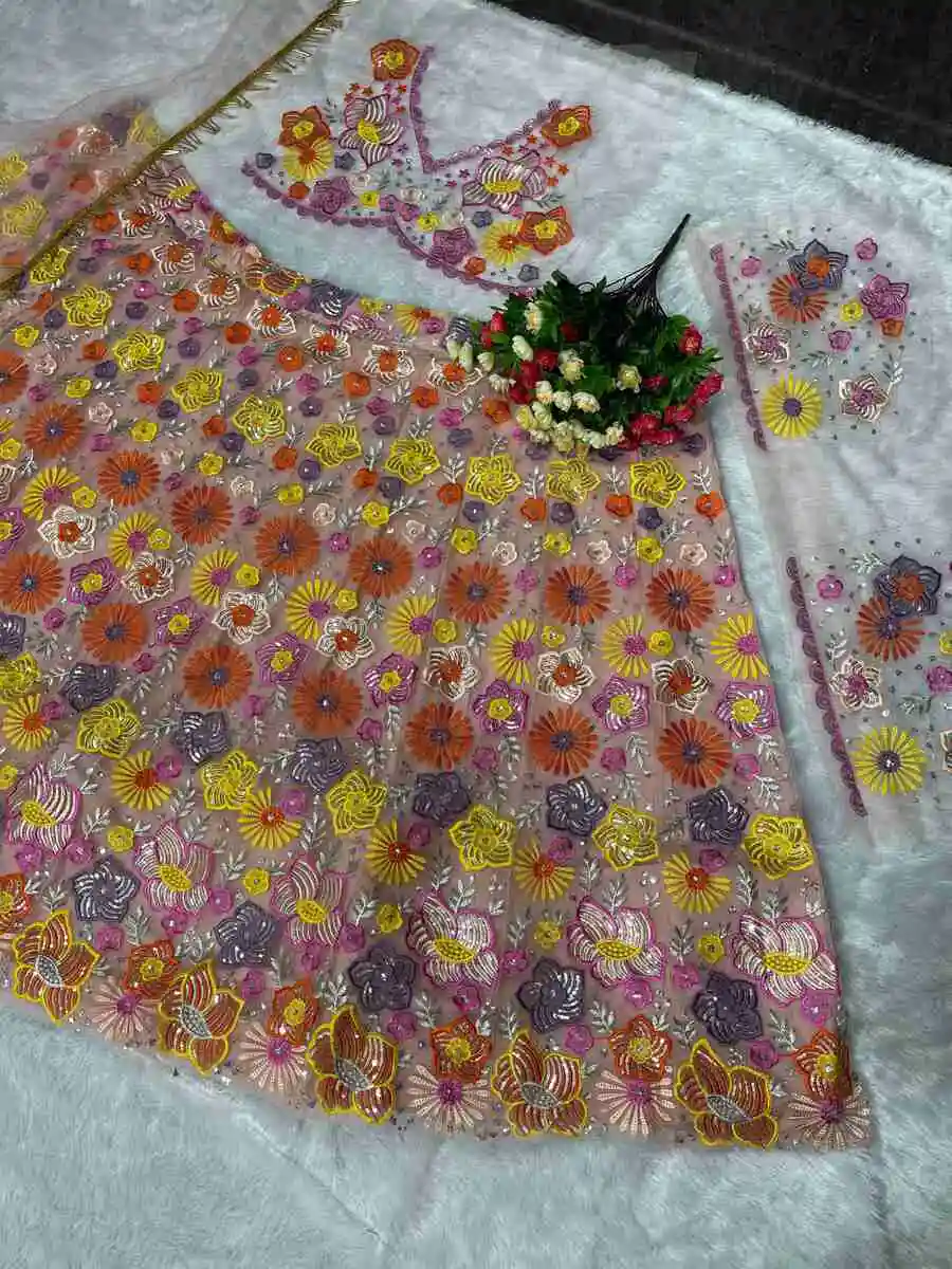 DESIGNER SOFT NET EMBROIDERY SEQUENCE WORK LEHENGA CHOLI WITH DUPATTA PINK