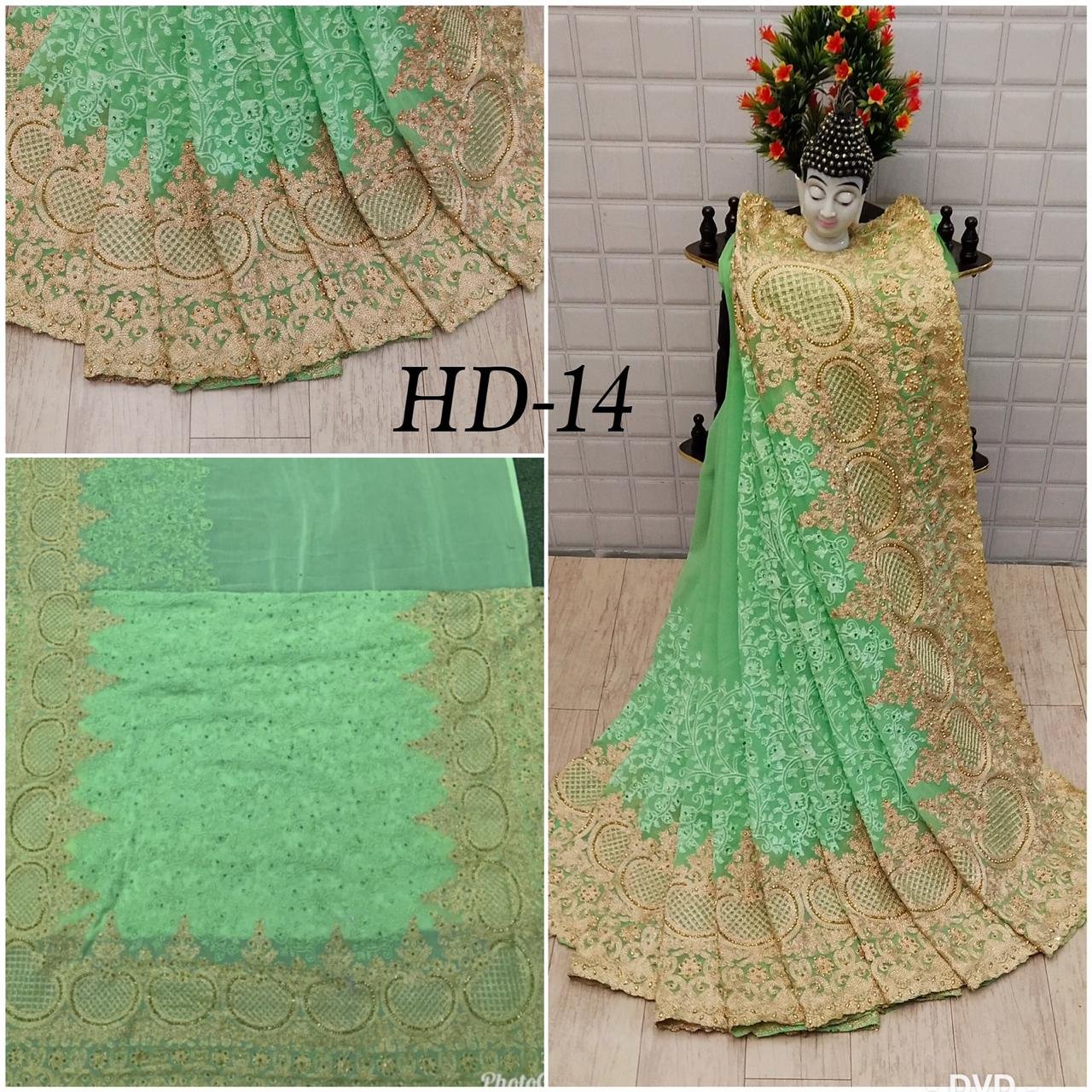 DESIGNER SOFY SILK HEAVY STONE WORK SAREE WITH UNSTITCHED BLOUSE PISTA