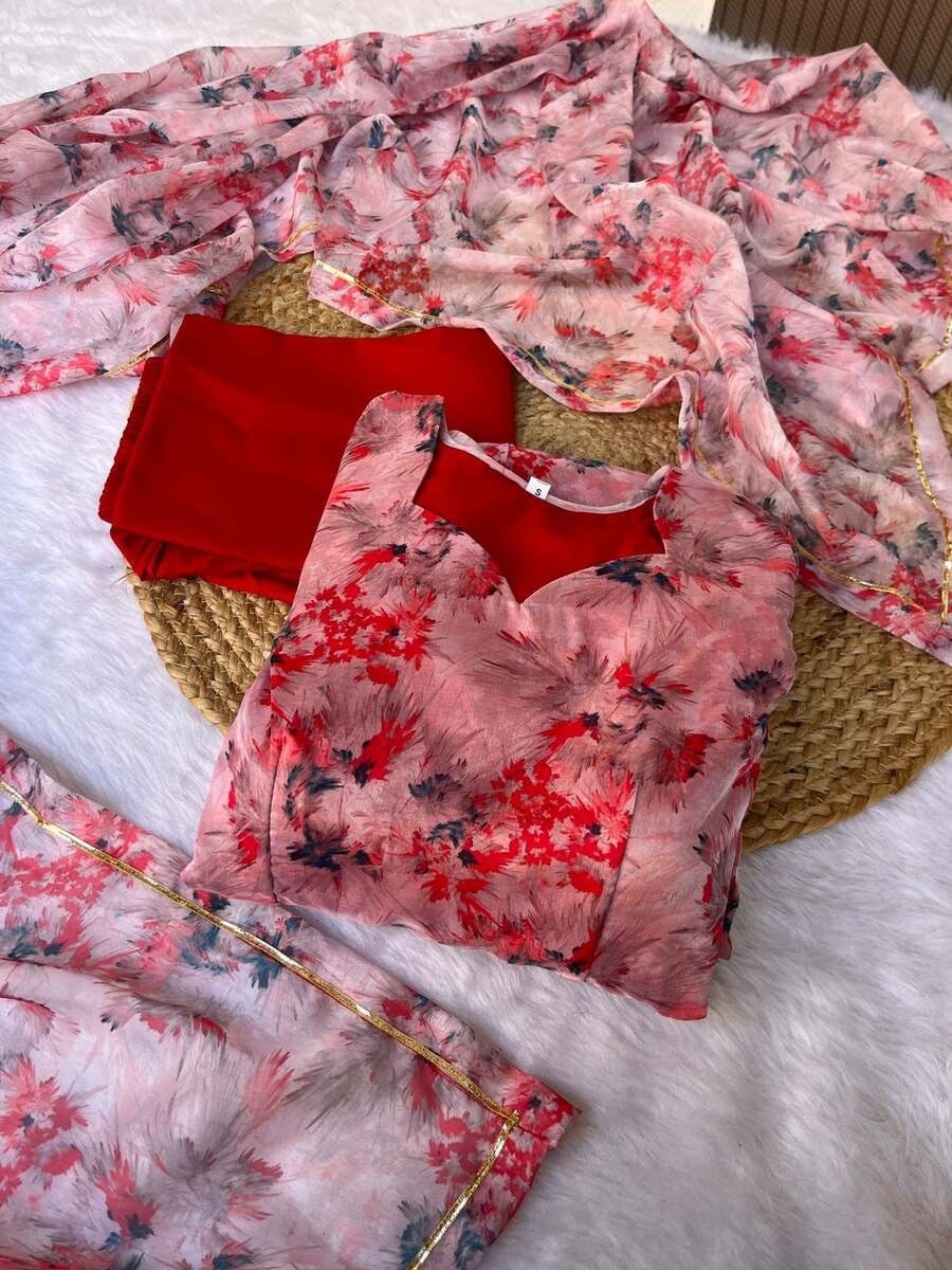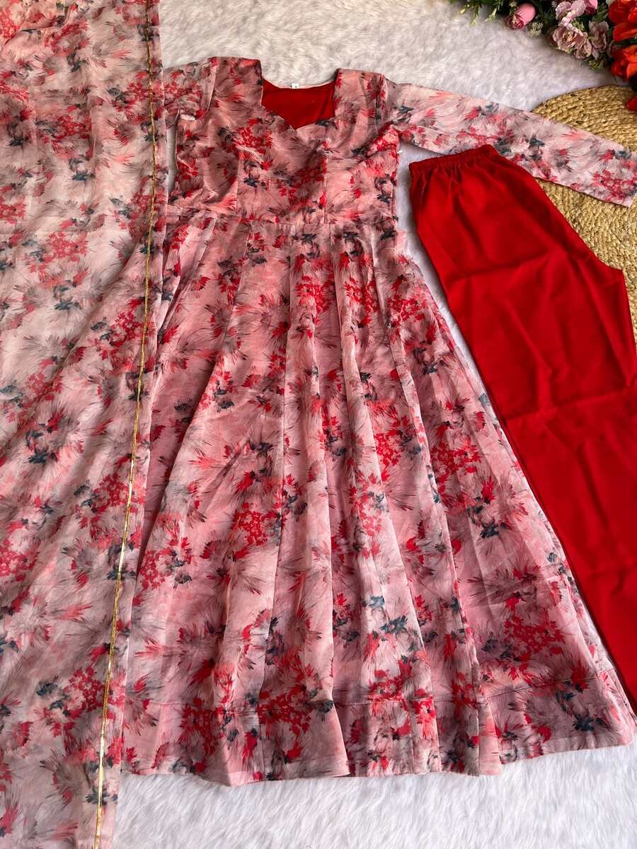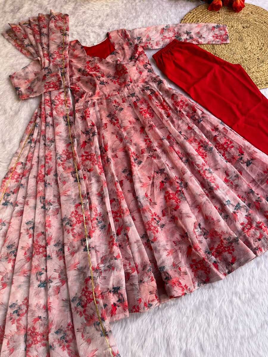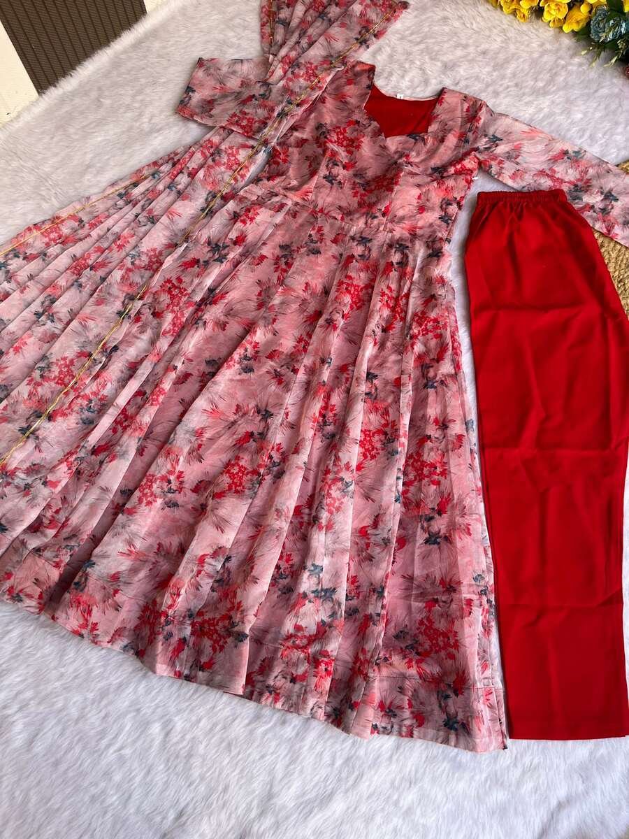 GOWN FABRIC : ORGANZA TABBY SILK HEAVY QUALITY FABRIC WITH DIGITAL PRINT AND , FULL SLEEVE
