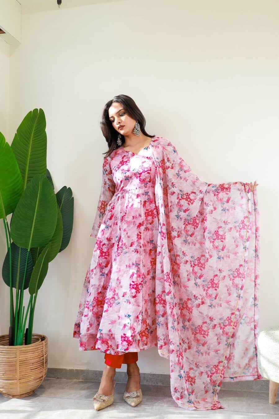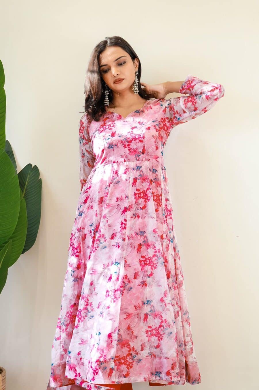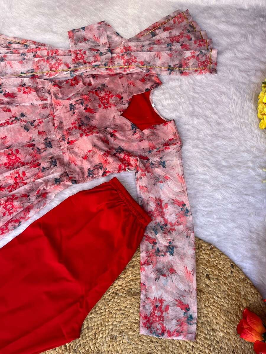 GOWN FABRIC : ORGANZA TABBY SILK HEAVY QUALITY FABRIC WITH DIGITAL PRINT AND , FULL SLEEVE