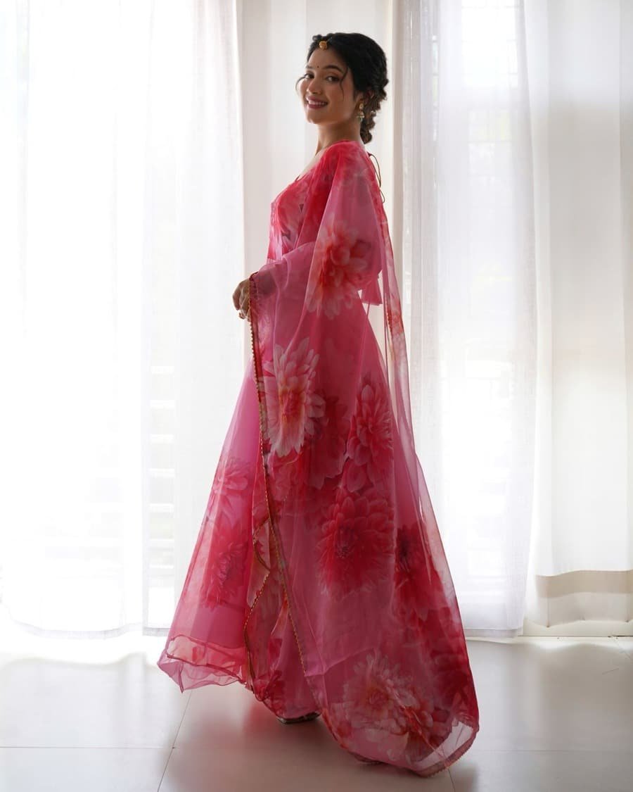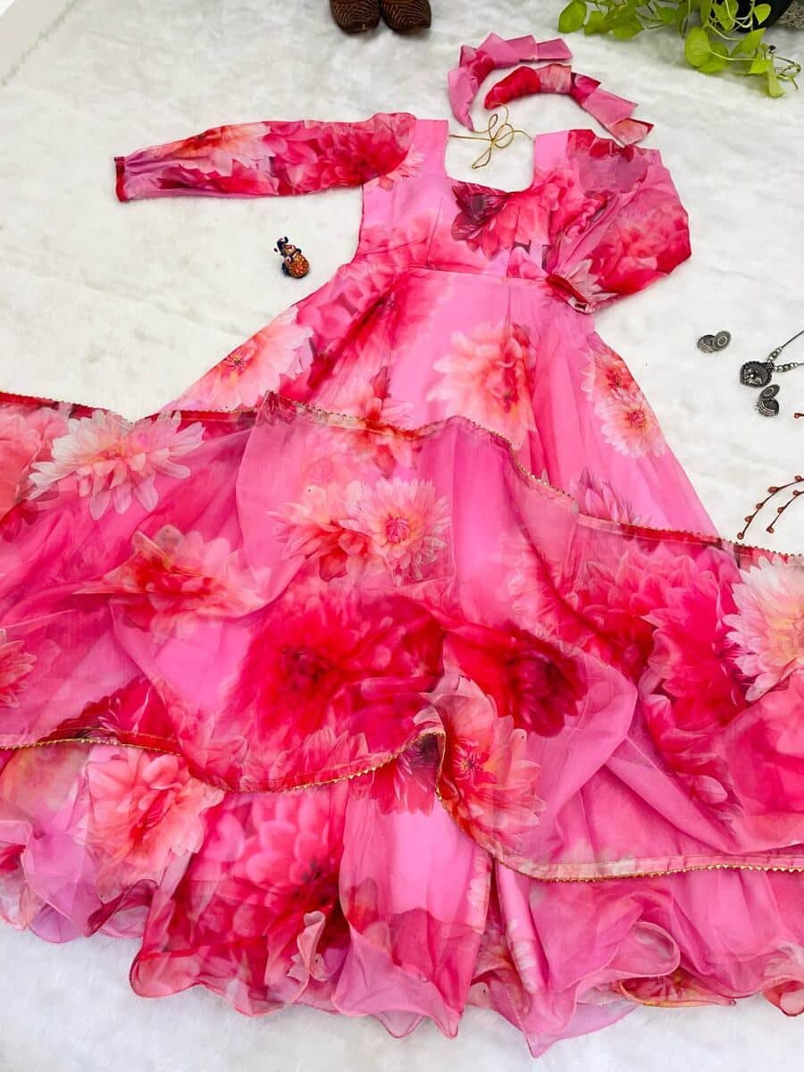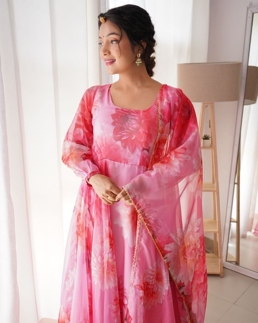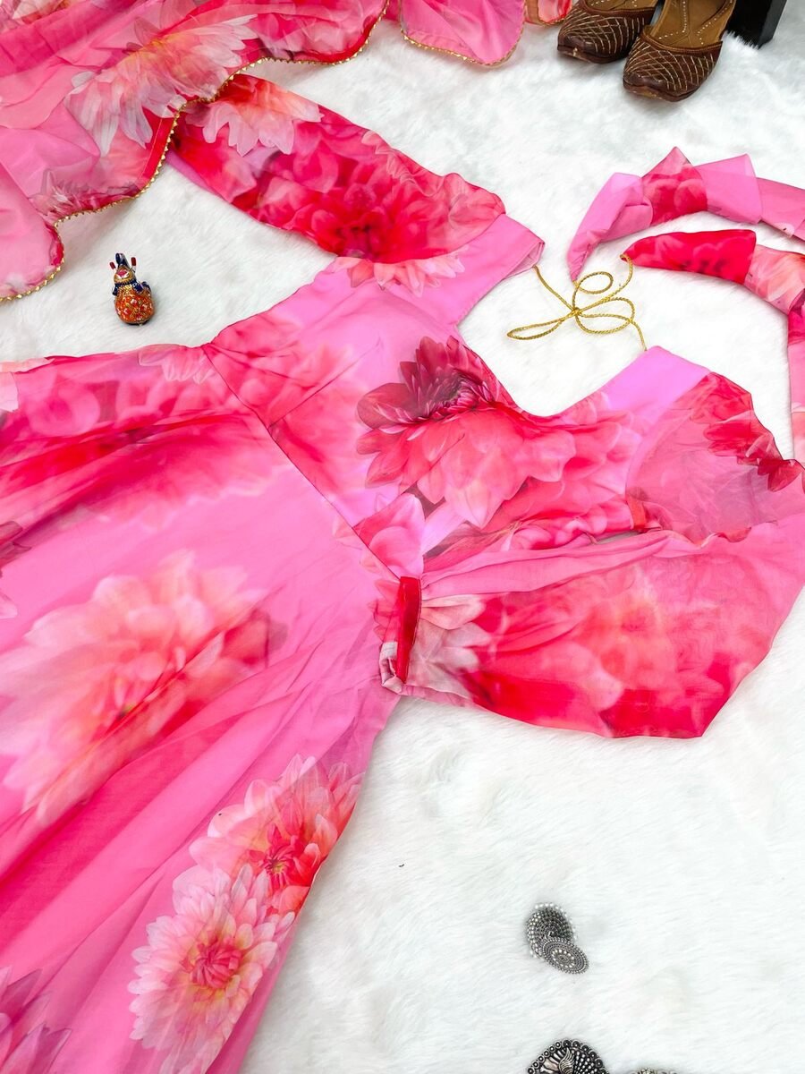 DESIGNER TUBBY ORGANZA DIGITAL PRINT WORK GOWN WITH DUPATTA PINK