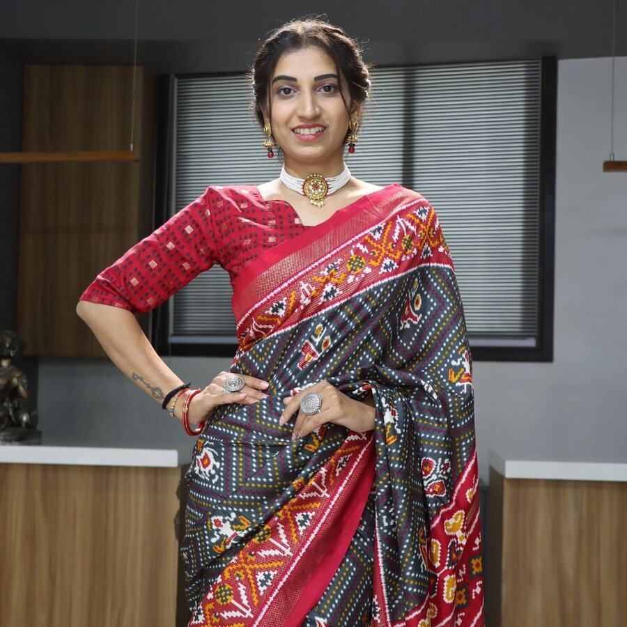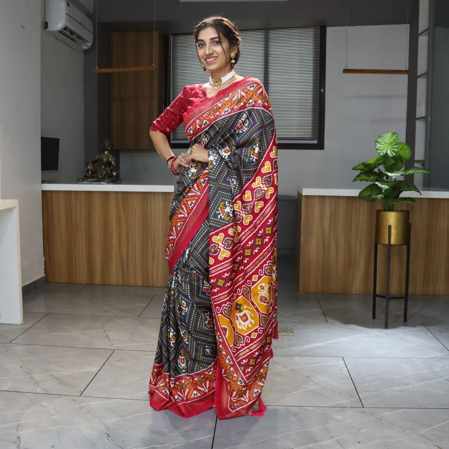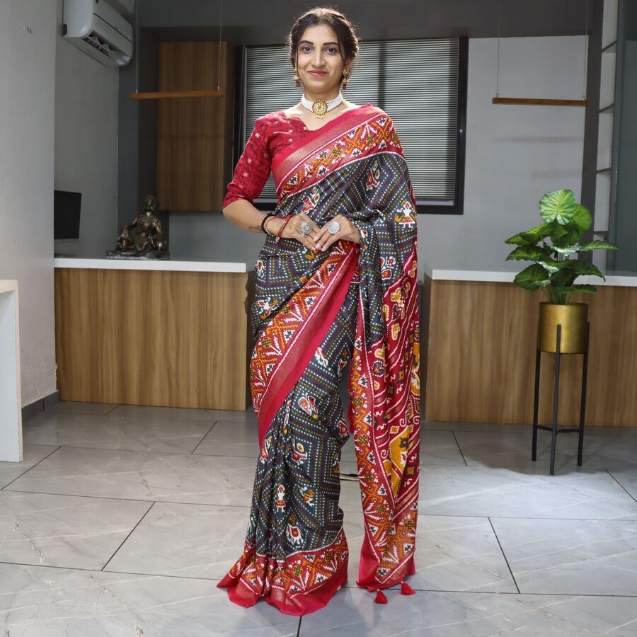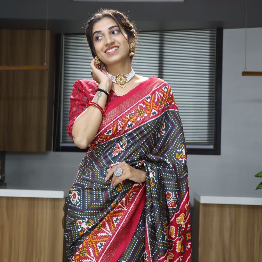 SAREE WORK : PRINTED WITH RICH FOIL WORK AND CONTRAST BORDER