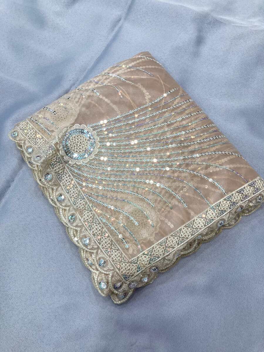 DESIGNER TWILL NET EMBROIDERY SEQUENCE WORK SAREE WITH UNSTITCHED BLOUSE PEACH