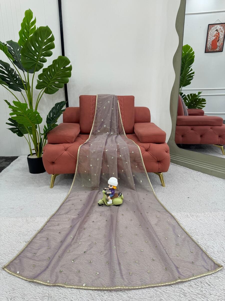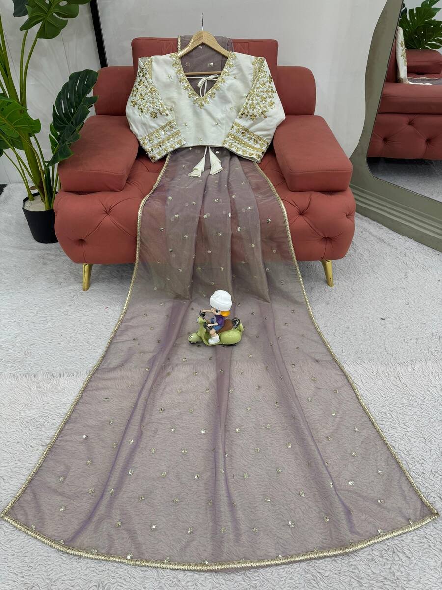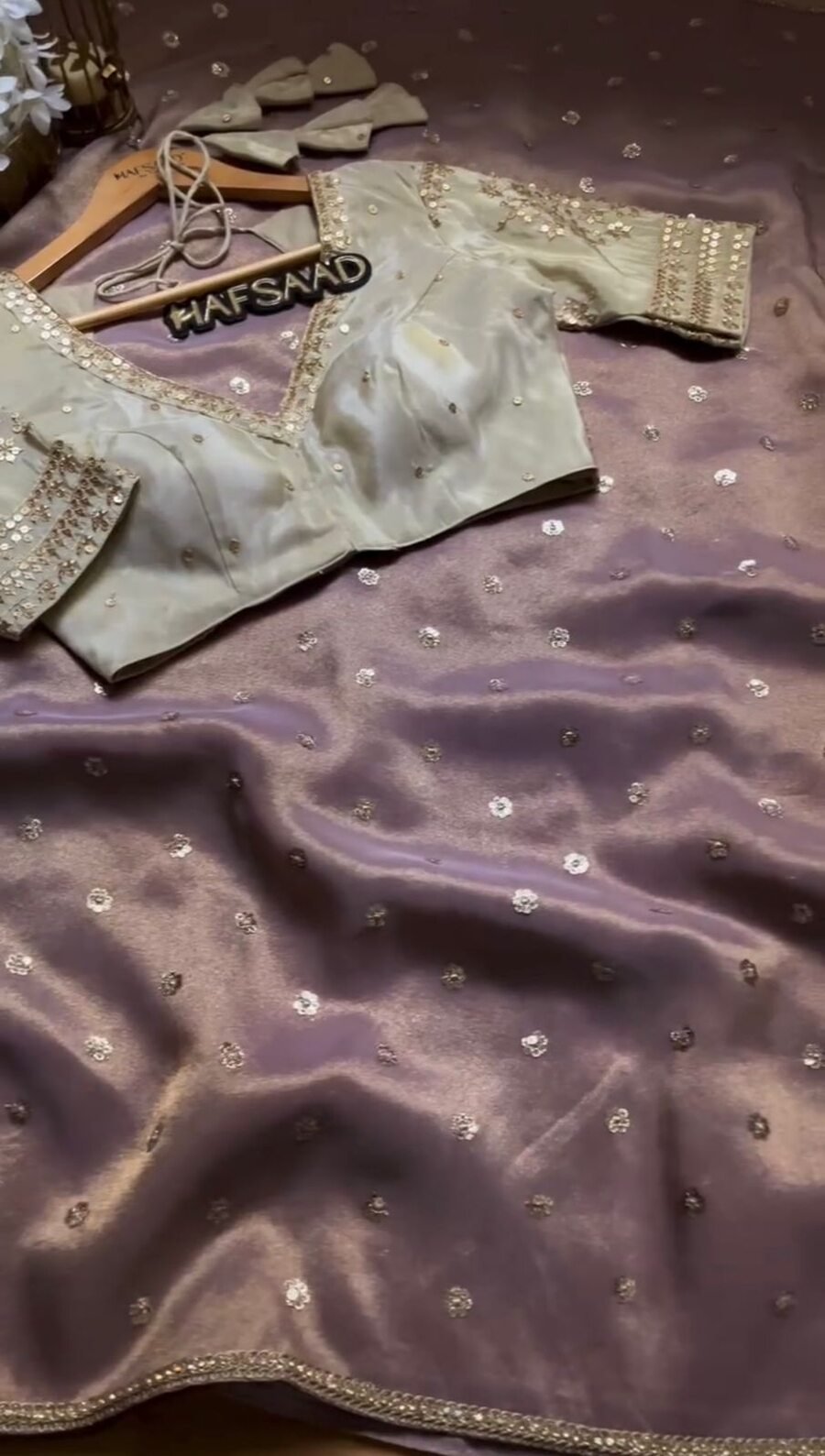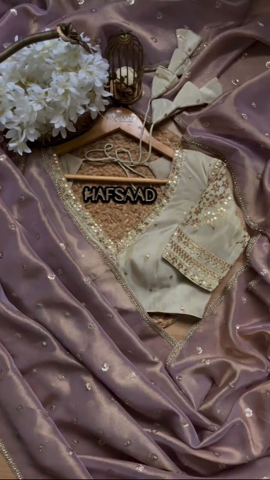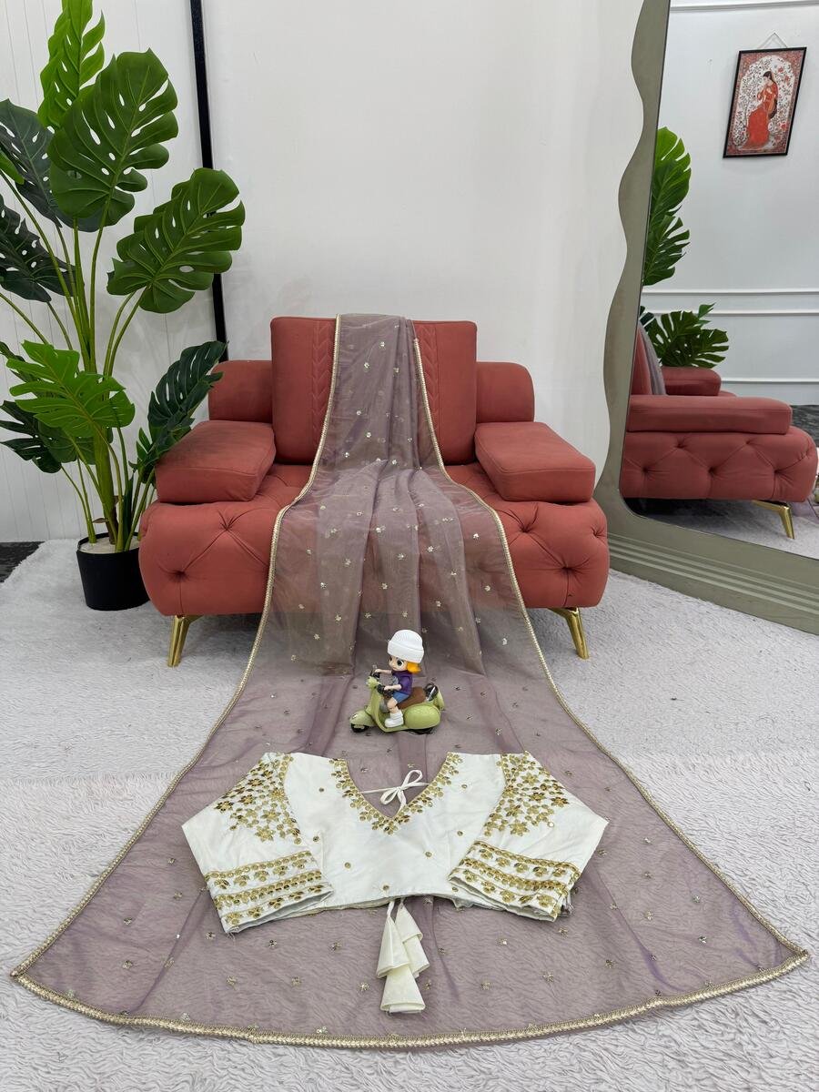 DESIGNER TWILL NET THREAD SEQUENCE WORK SAREE WITH STITCHED BLOUSE BABY PINK