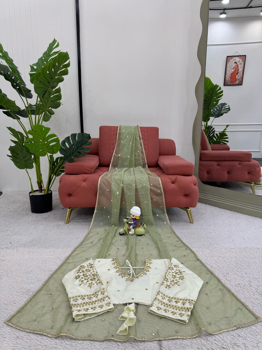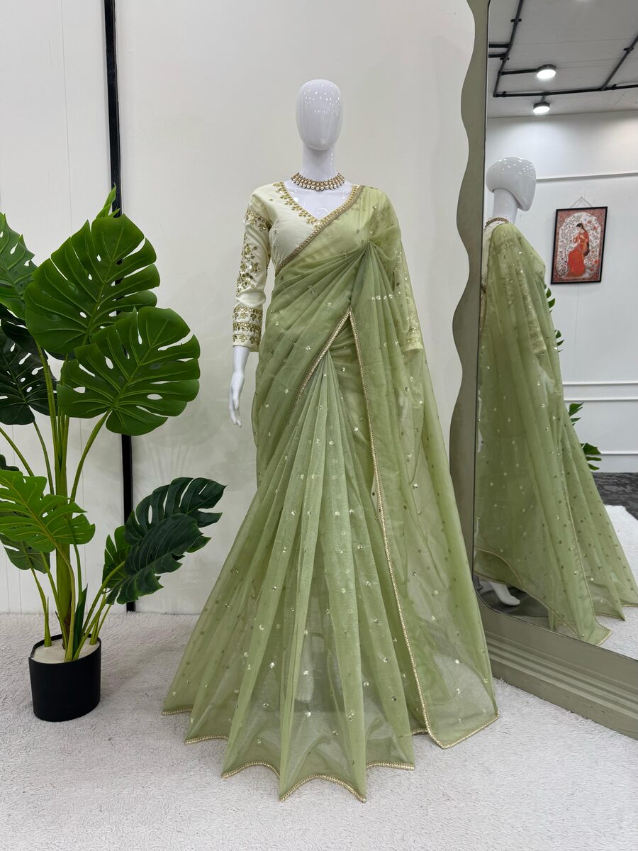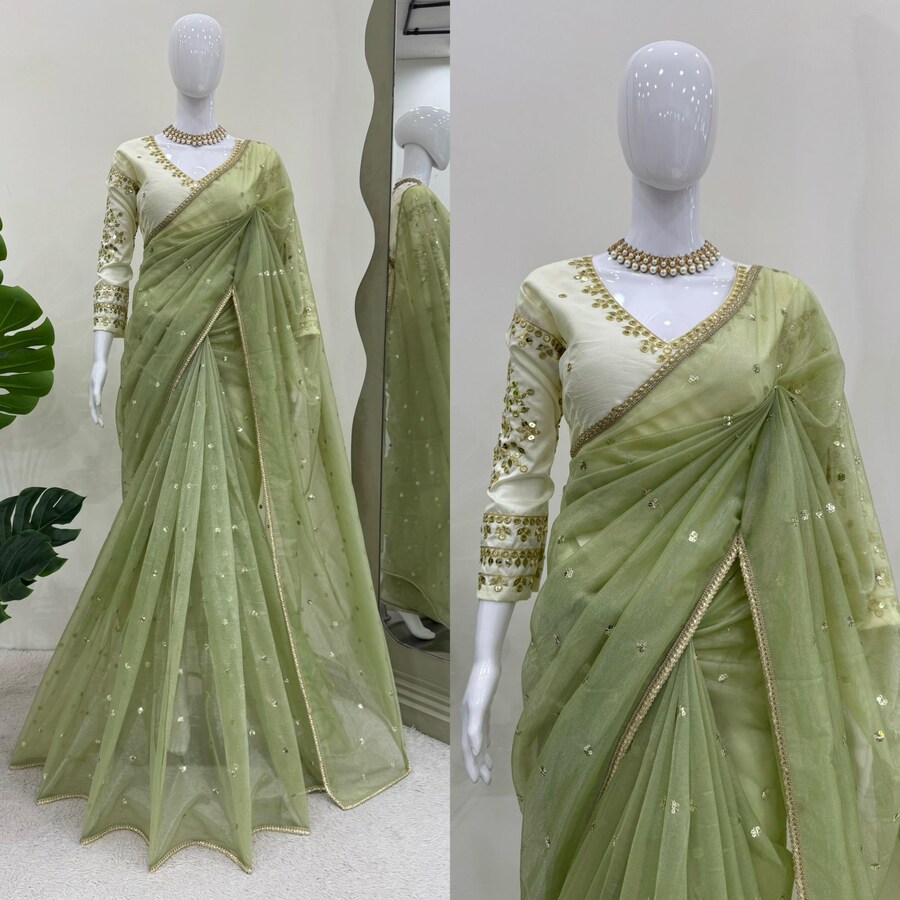 WORK :- THREAD AND SEQUENCE WITH FANCY LACE