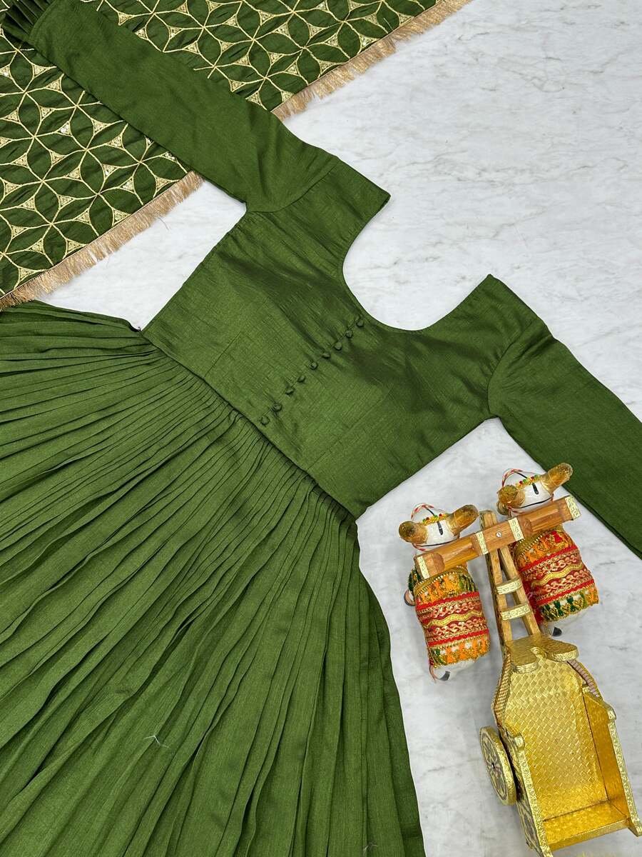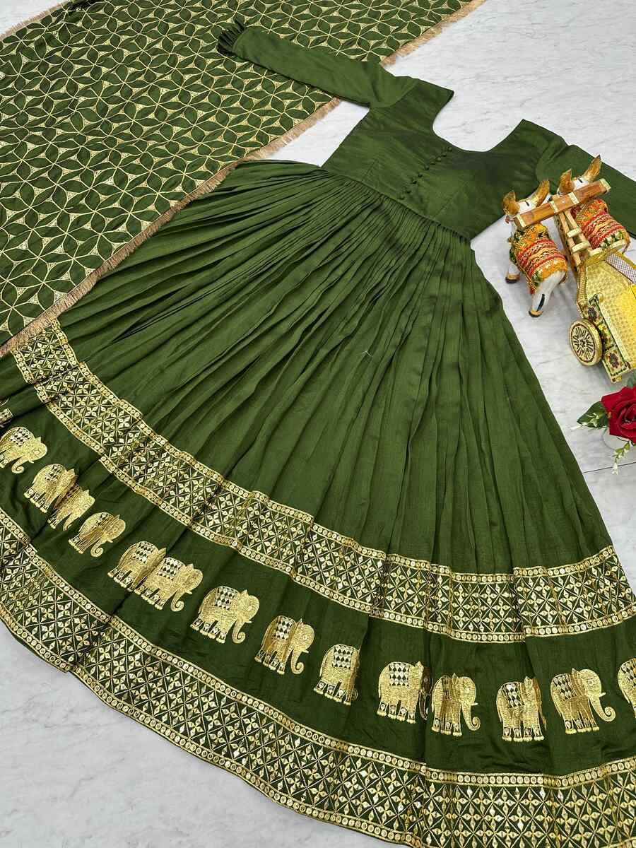 DESIGNER VICHITRA SILK SEQUENCE EMBROIDERY WORK GOWN WITH DUPATTA PERROT GREEN