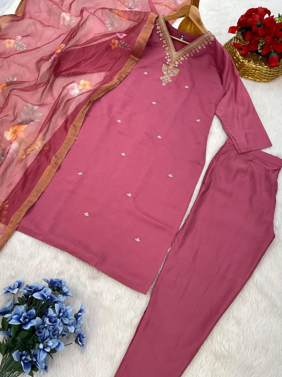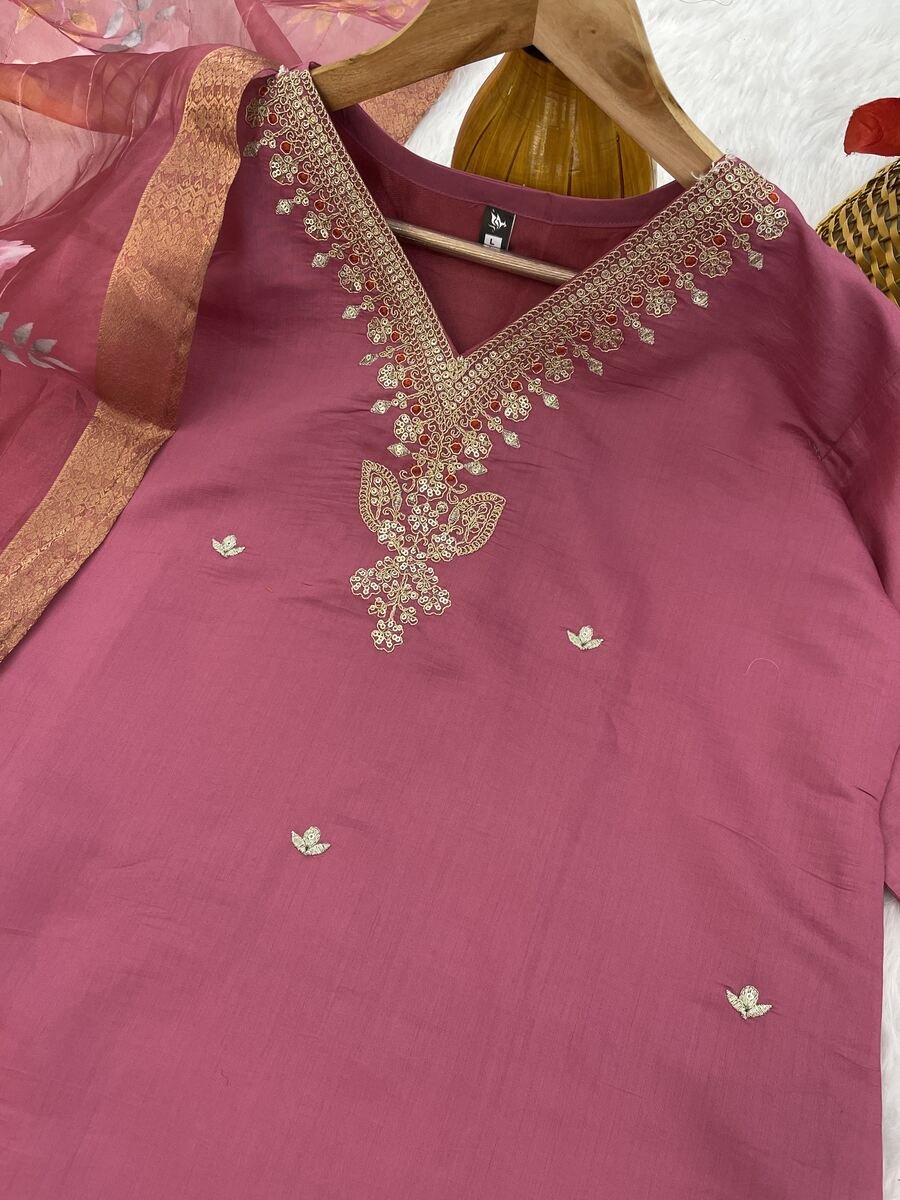 TOP FABRIC : VISCOSE CHANDERI WITH SEQUENCE CODING EMBROIDERY WORK
