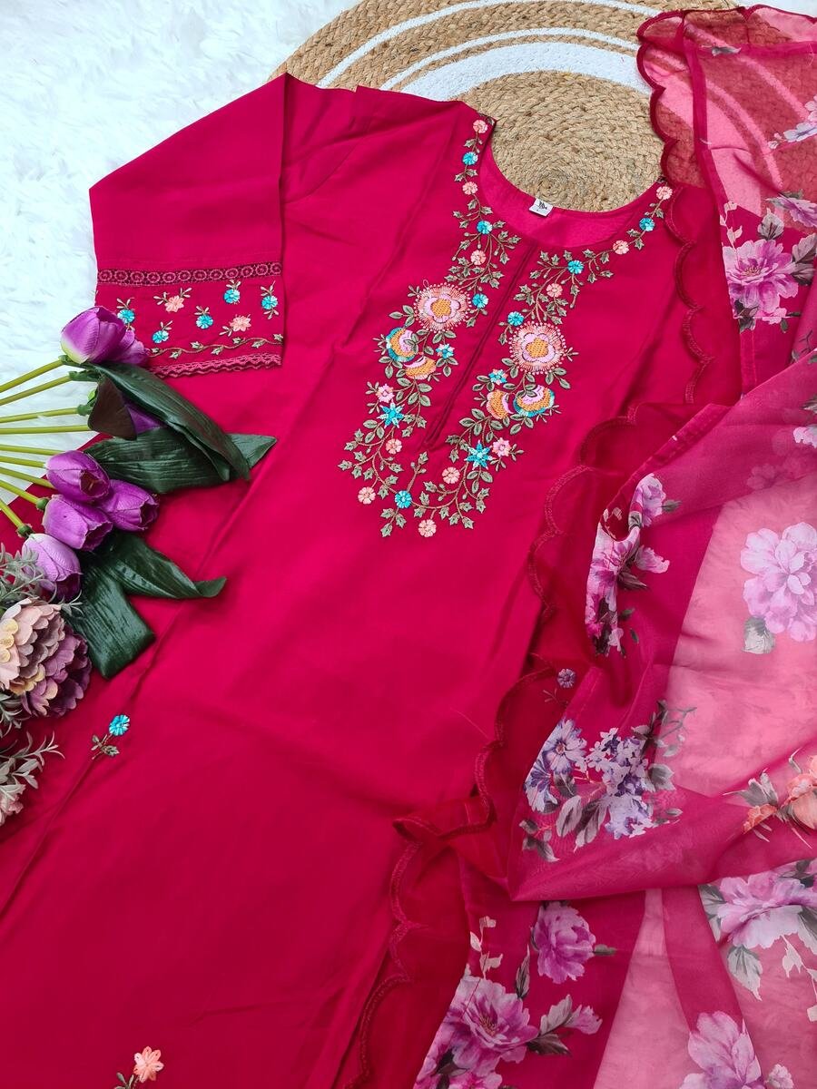 DESIGNER VISCOSE CHANDERI SEQUENCE EMBROIDERY WORK TOP BOTTOM WITH DUPATTA RANI