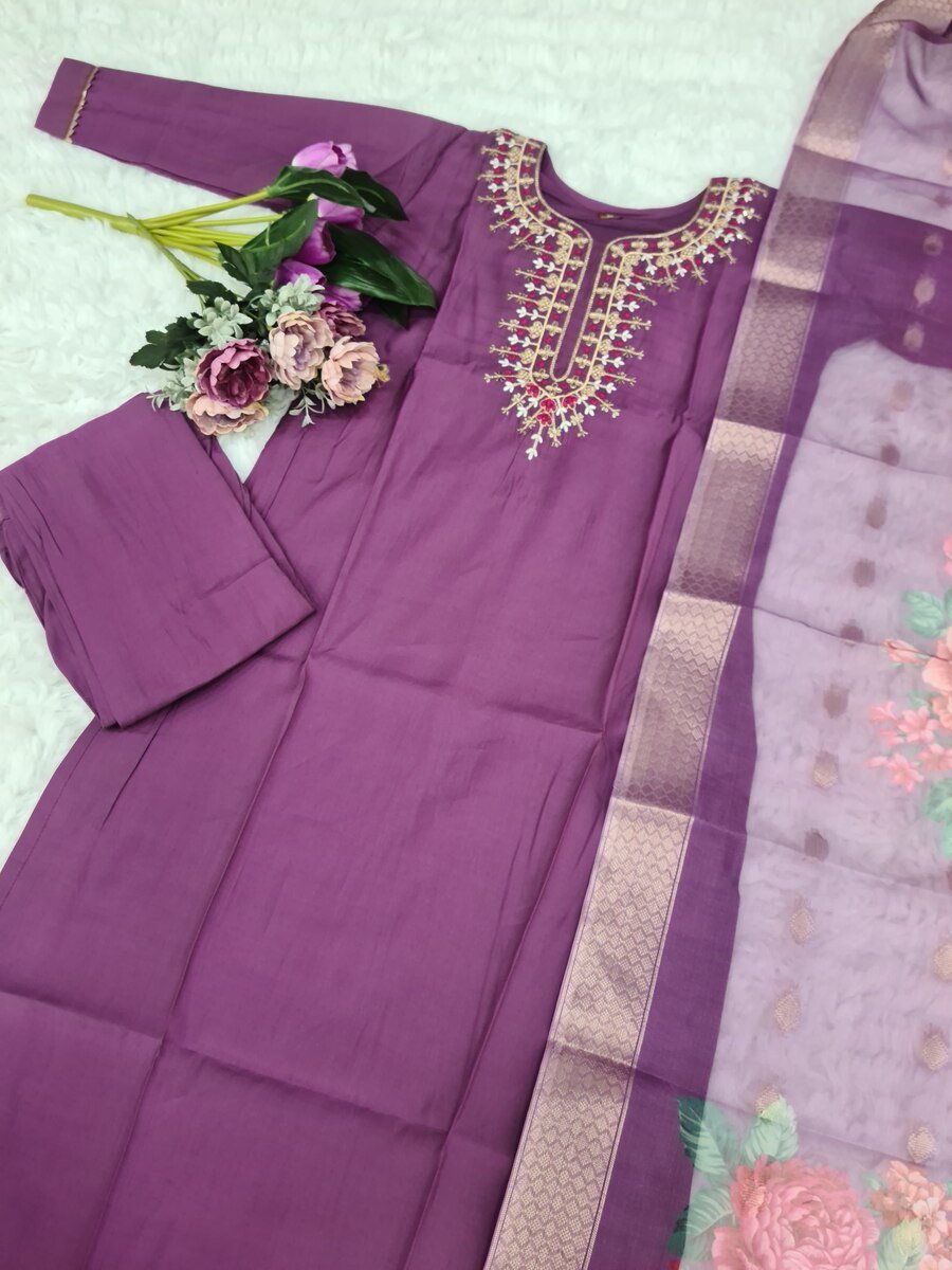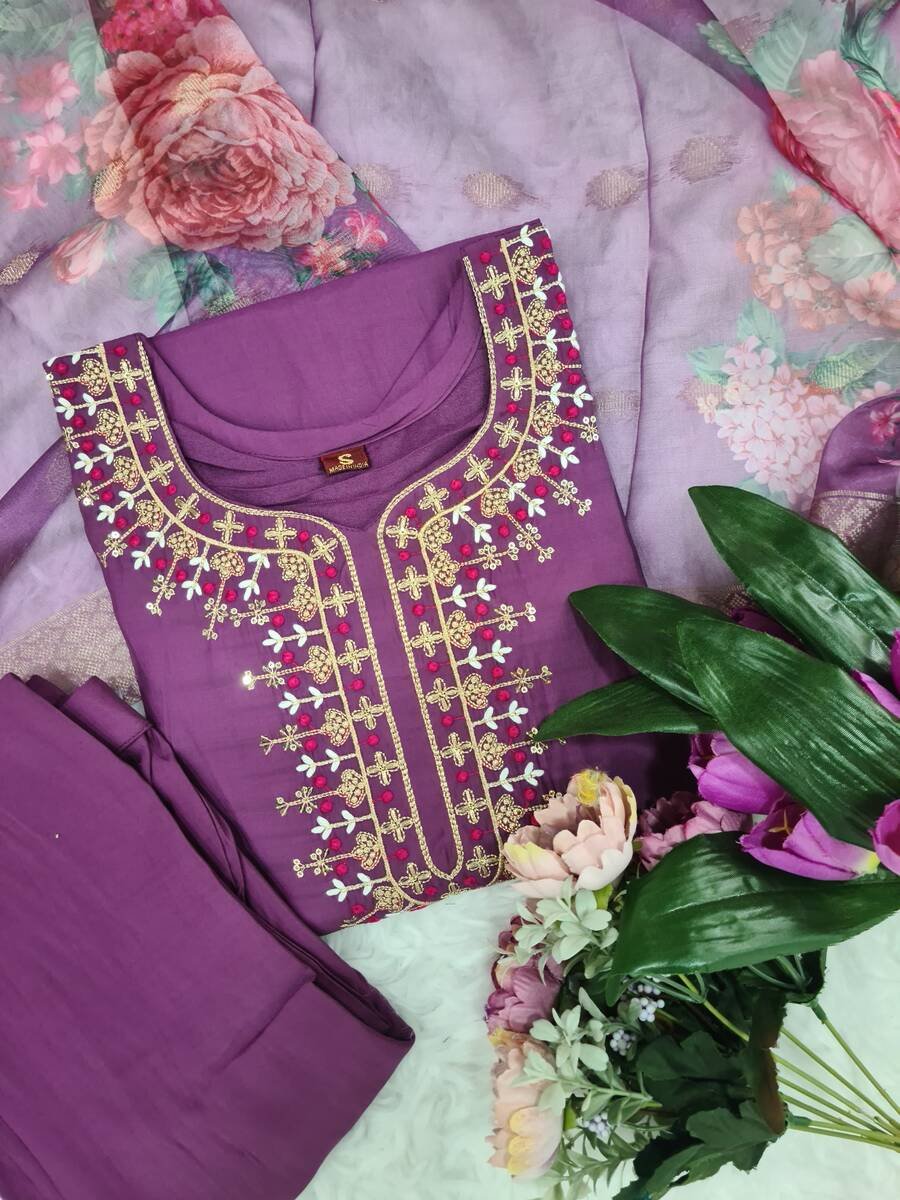 TOP FABRIC : VISCOSE CHANDERI WITH SEQUENCE CODING EMBROIDERY WORK