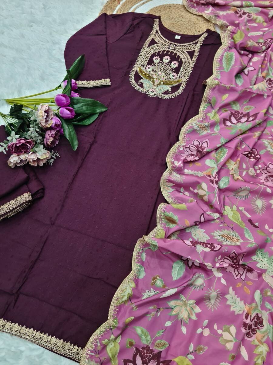 DUPPATA FABRIC : HEAVY FRENCH CRAPE DUPPATA WITH SEQUENCE EMBROIDERY