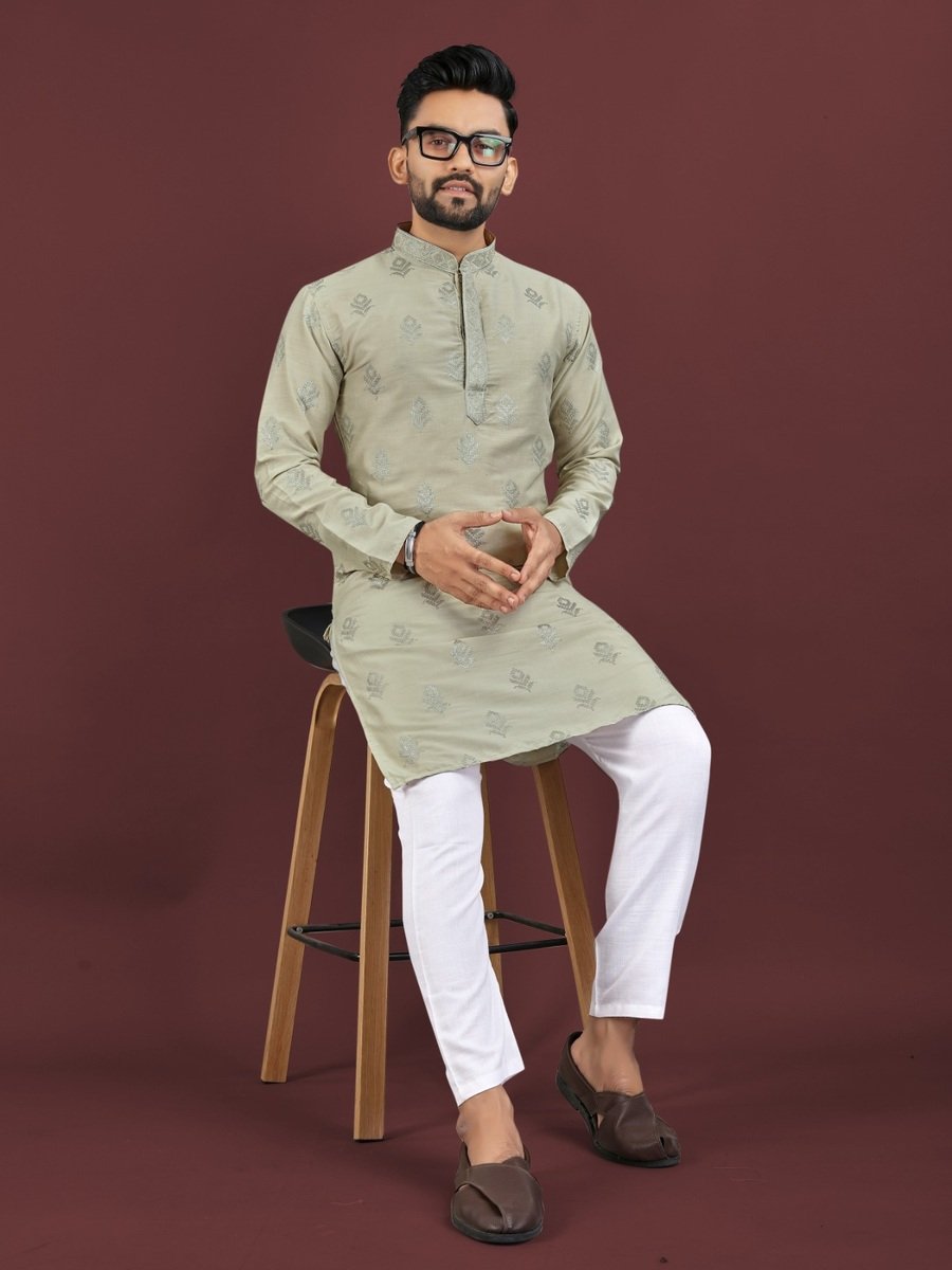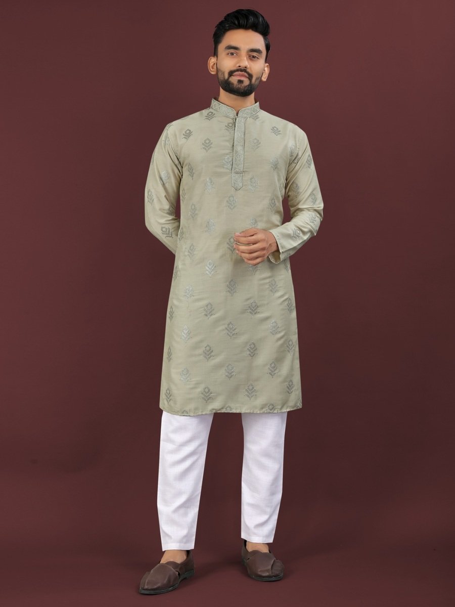 DESIGNER VISCOSE SILK EMBROIDERY SEQUENCE WORK MEN’S KURTA PAYJAMA PISTA