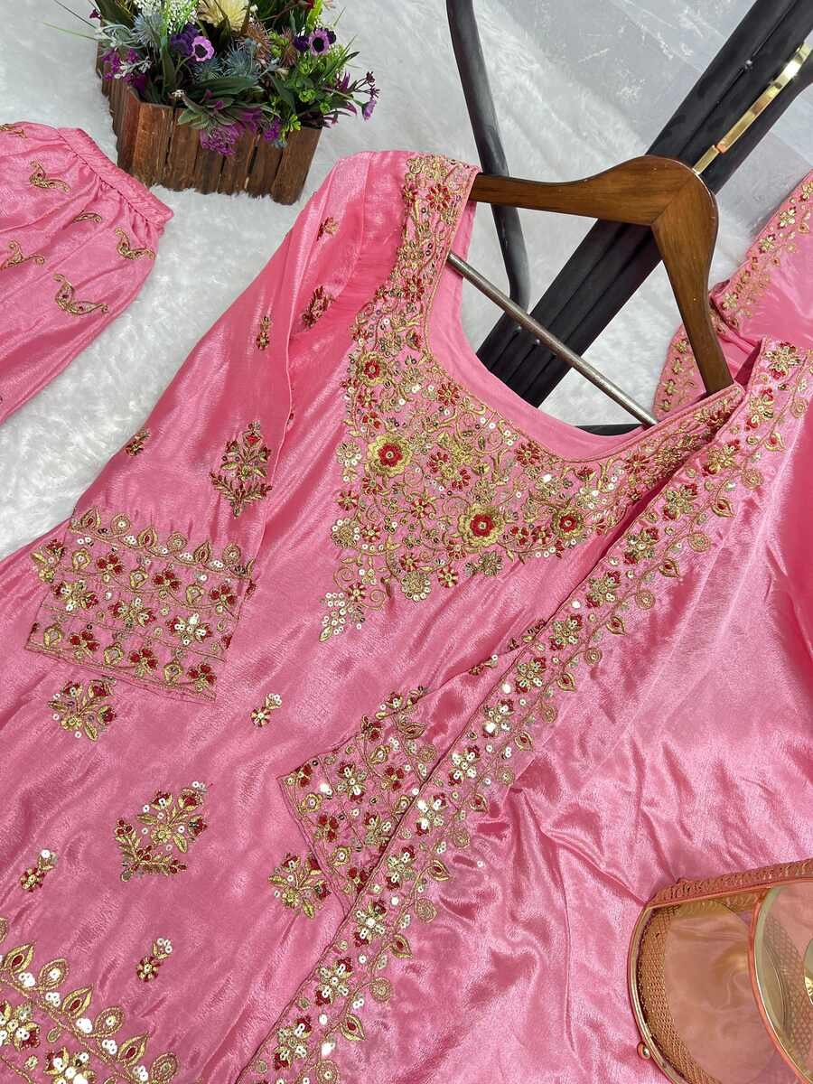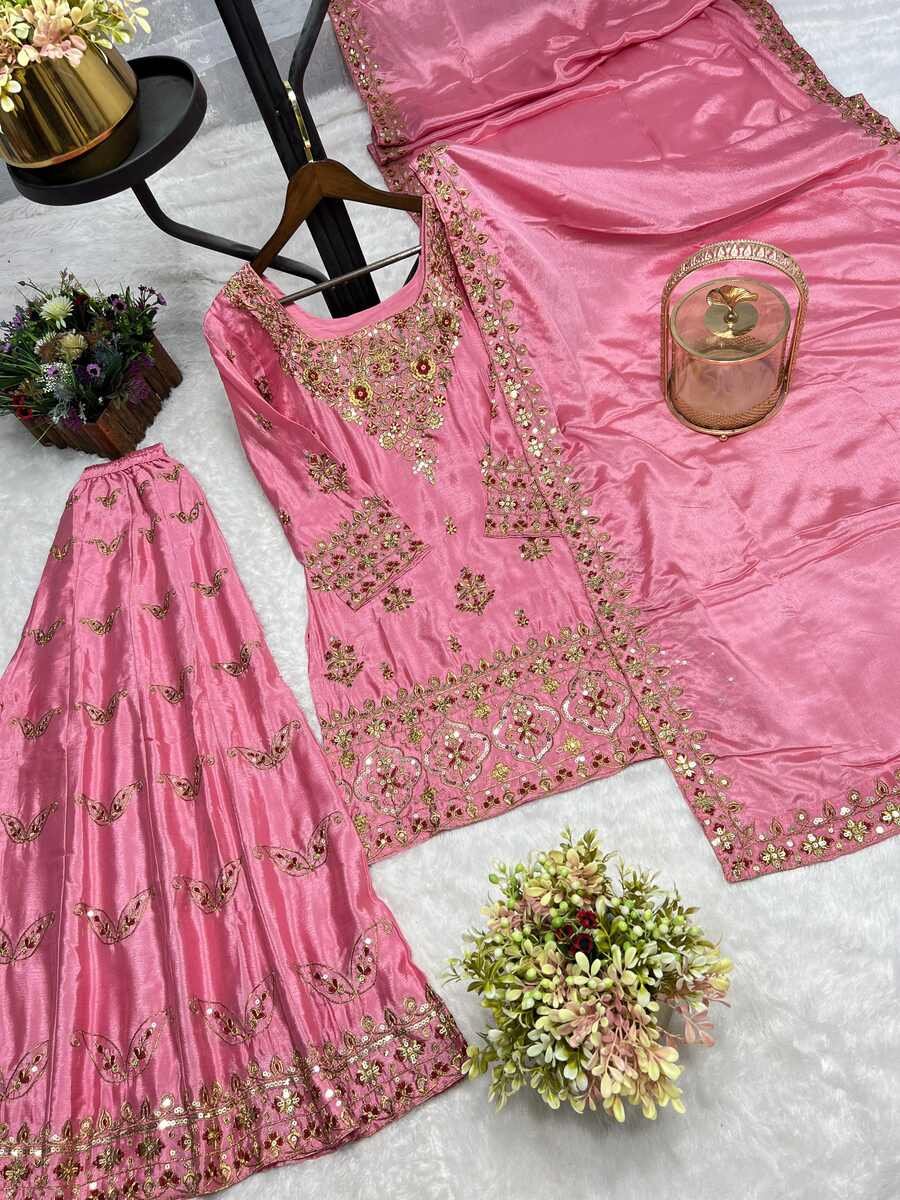 FABCY CHINON SILK EMBROIDERY AND SEQUENCE WORK TOP PALAZZO WITH DUPATTA BABY PINK