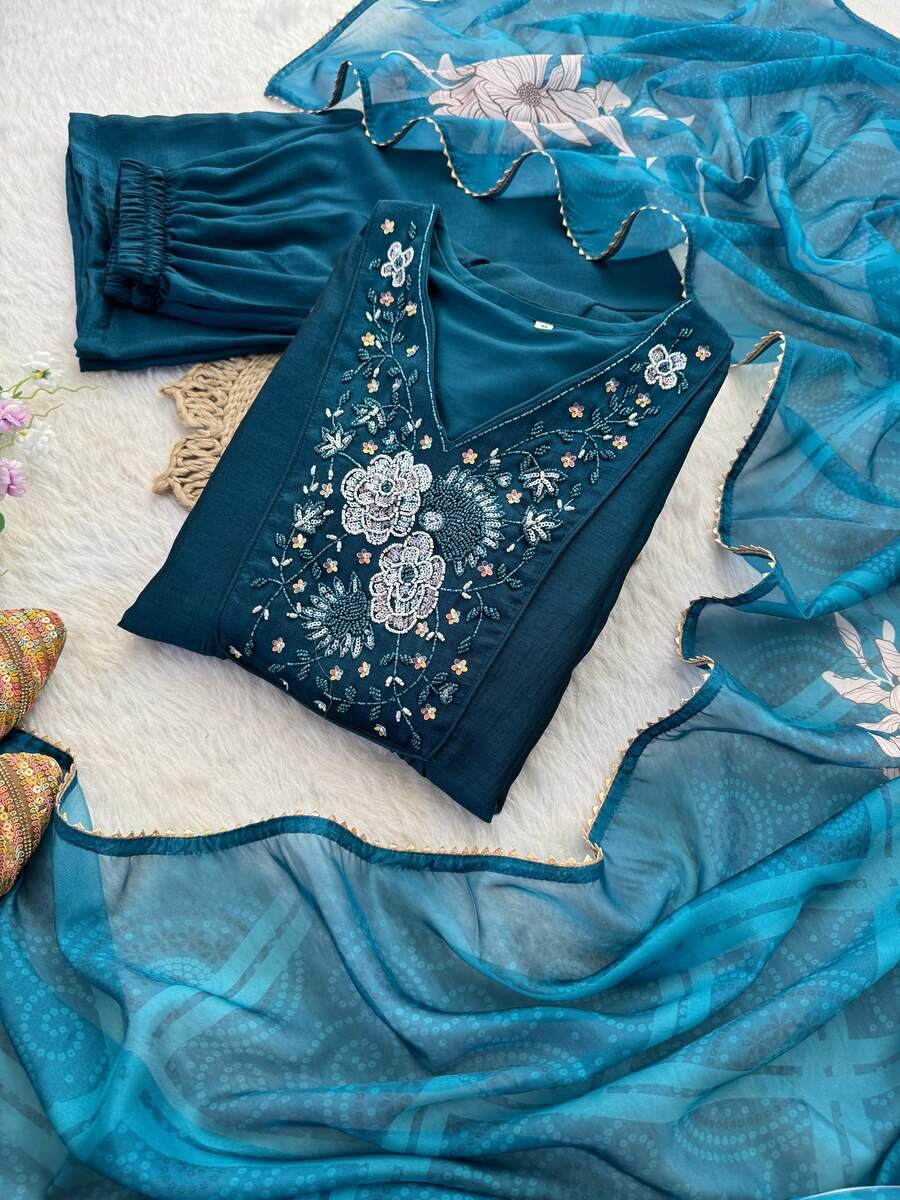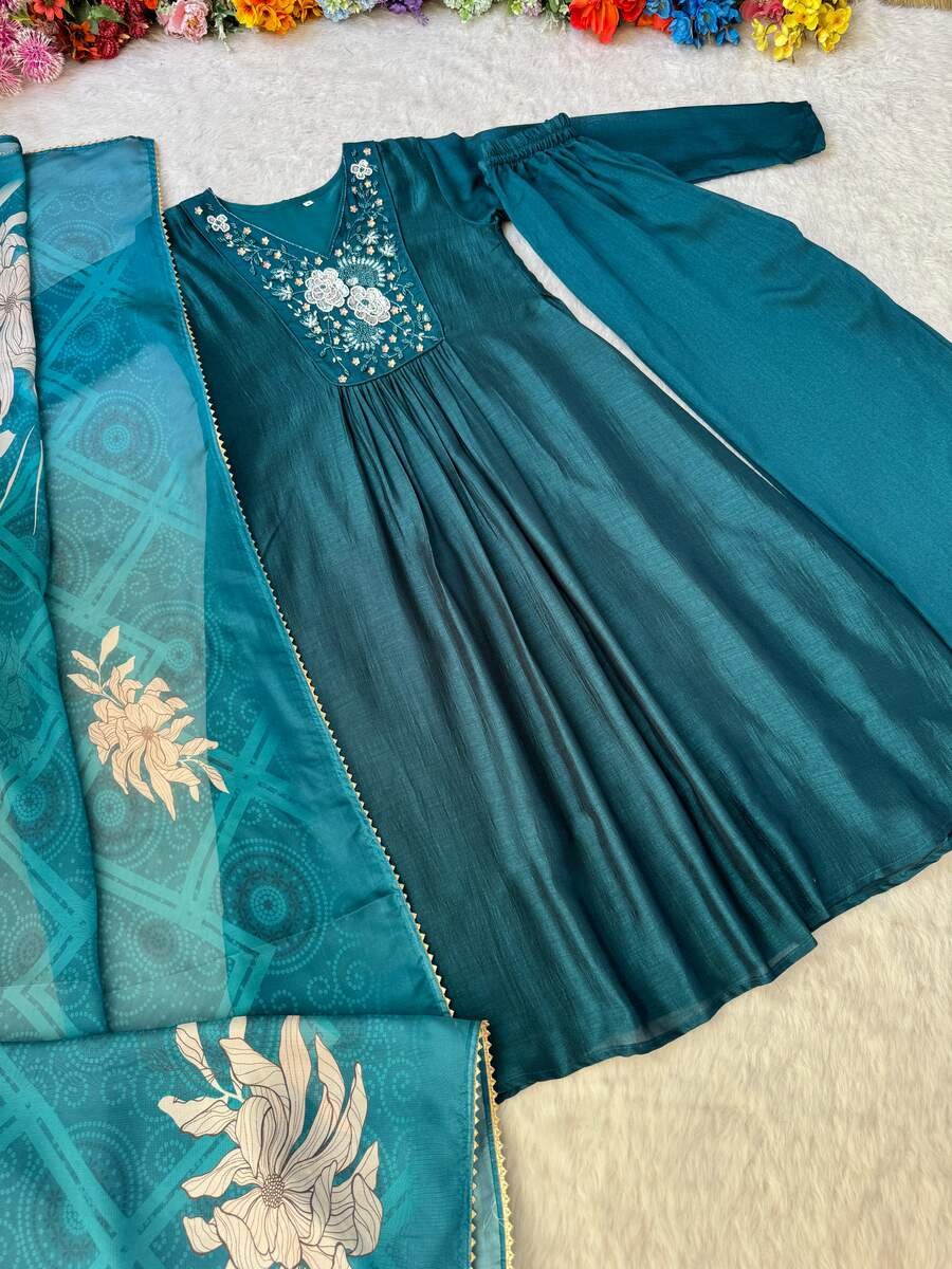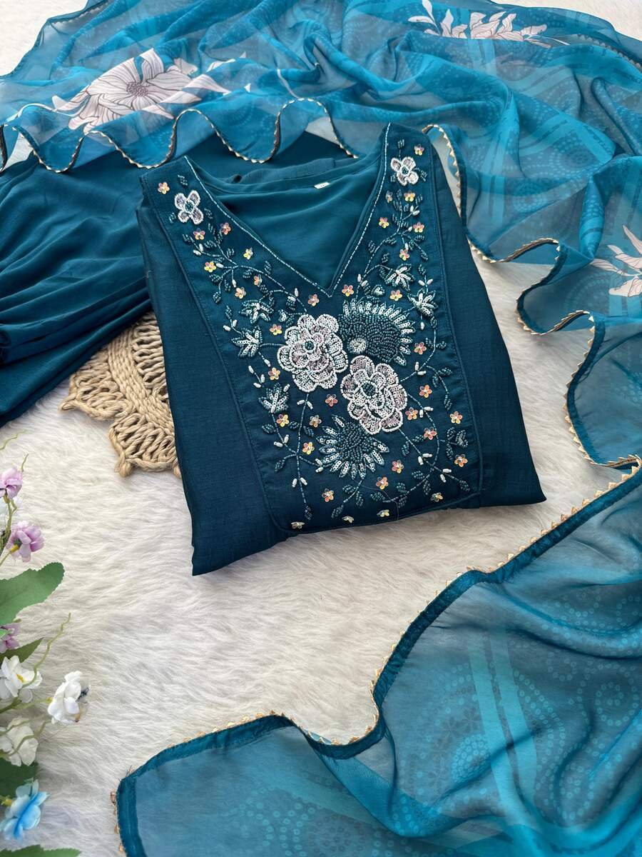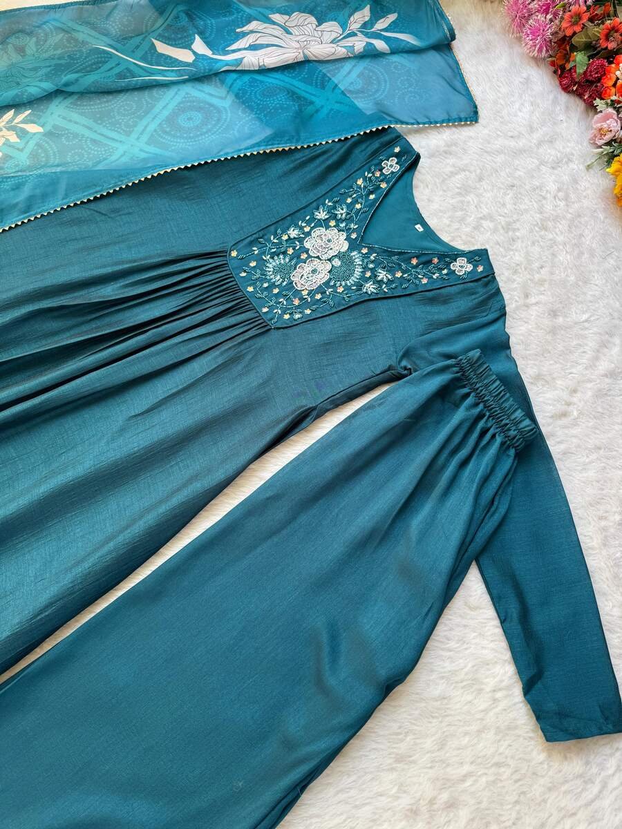 FABCY VICHITRA SILK HAND WORK A LINE GOWN PALAZZO WITH DUPATTA RAMA