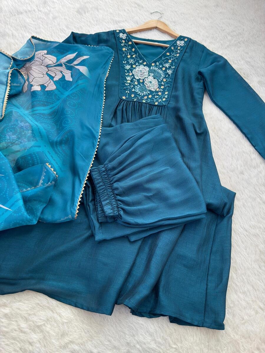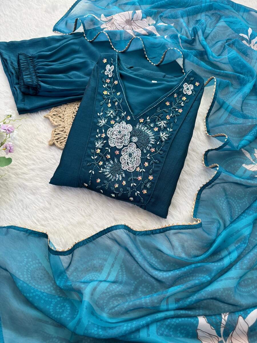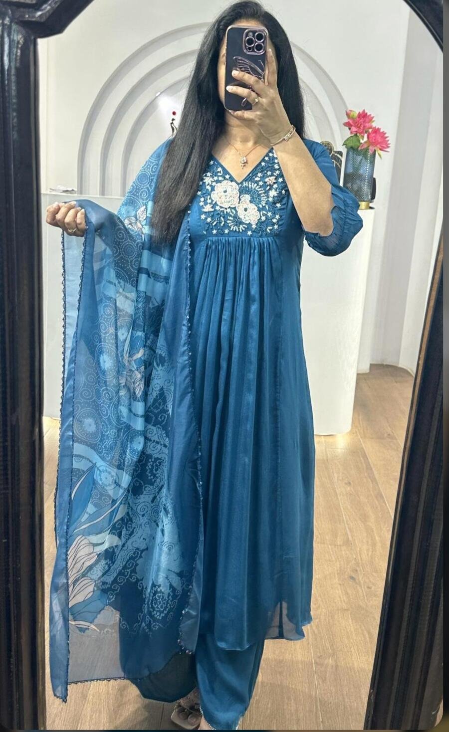 FABCY VICHITRA SILK HAND WORK A LINE GOWN PALAZZO WITH DUPATTA RAMA