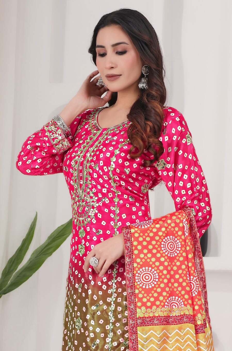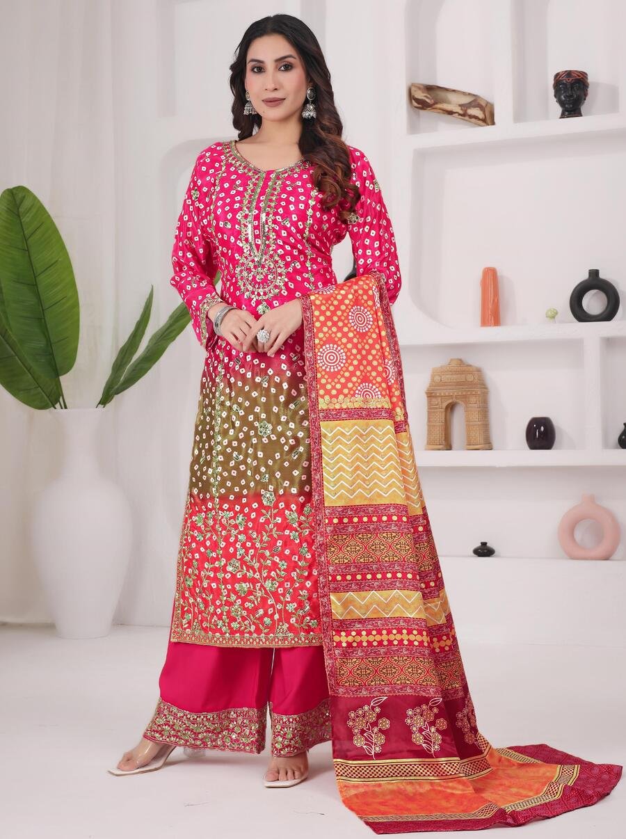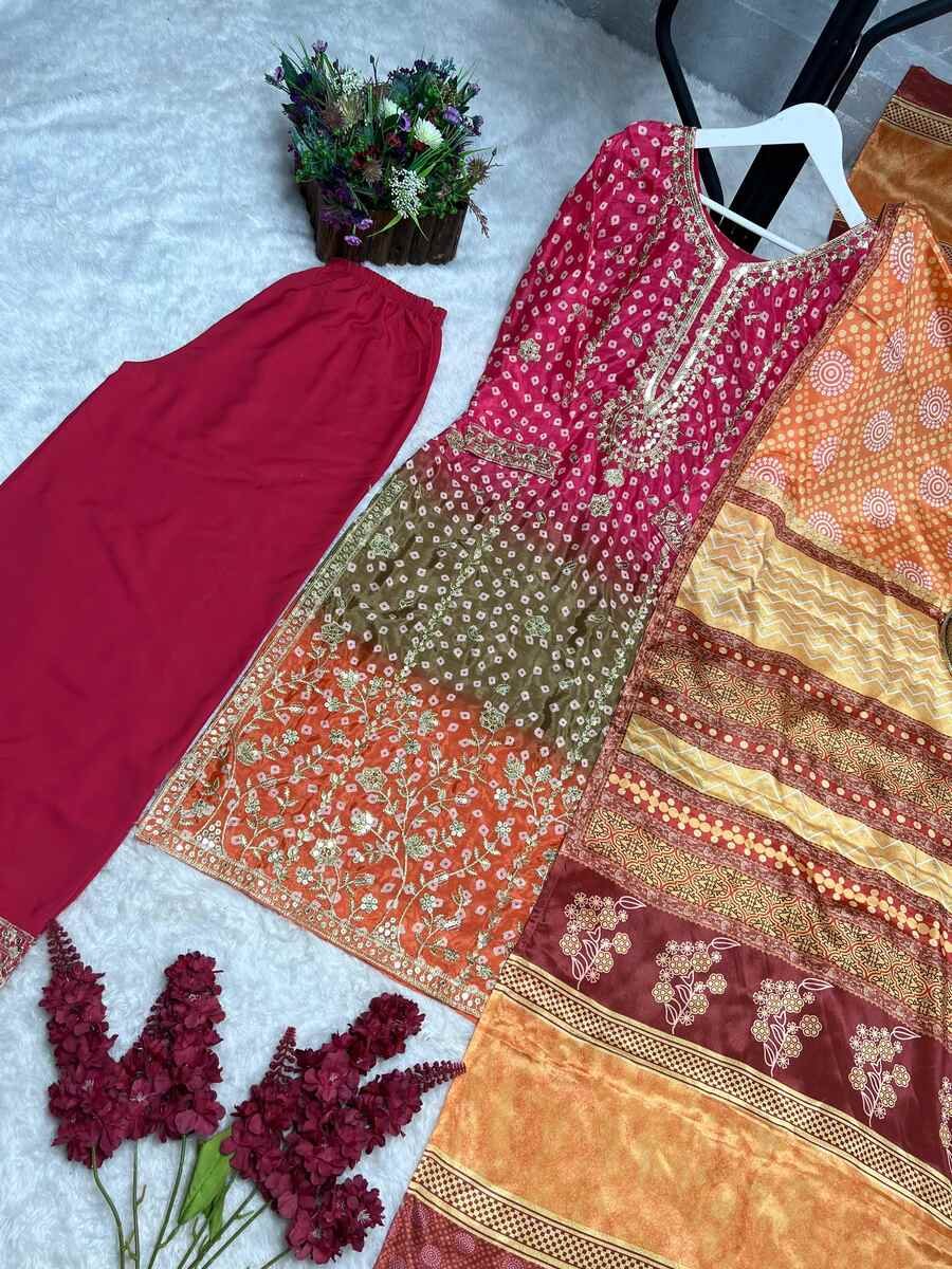 FABULOUS CHINON SILK EMBROIDERY SEQUENCE WORK KURTI PALAZZO WITH DUPATTA RANI