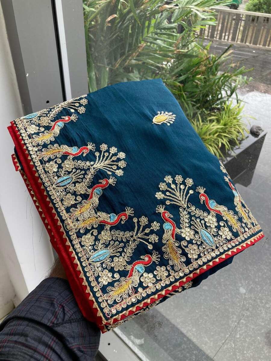 FABULOUS GEORGETTE THREAD SEQUENCE EMBROIDERY WORK SAREE WITH UNSTITCHED BLOUSE BLUE