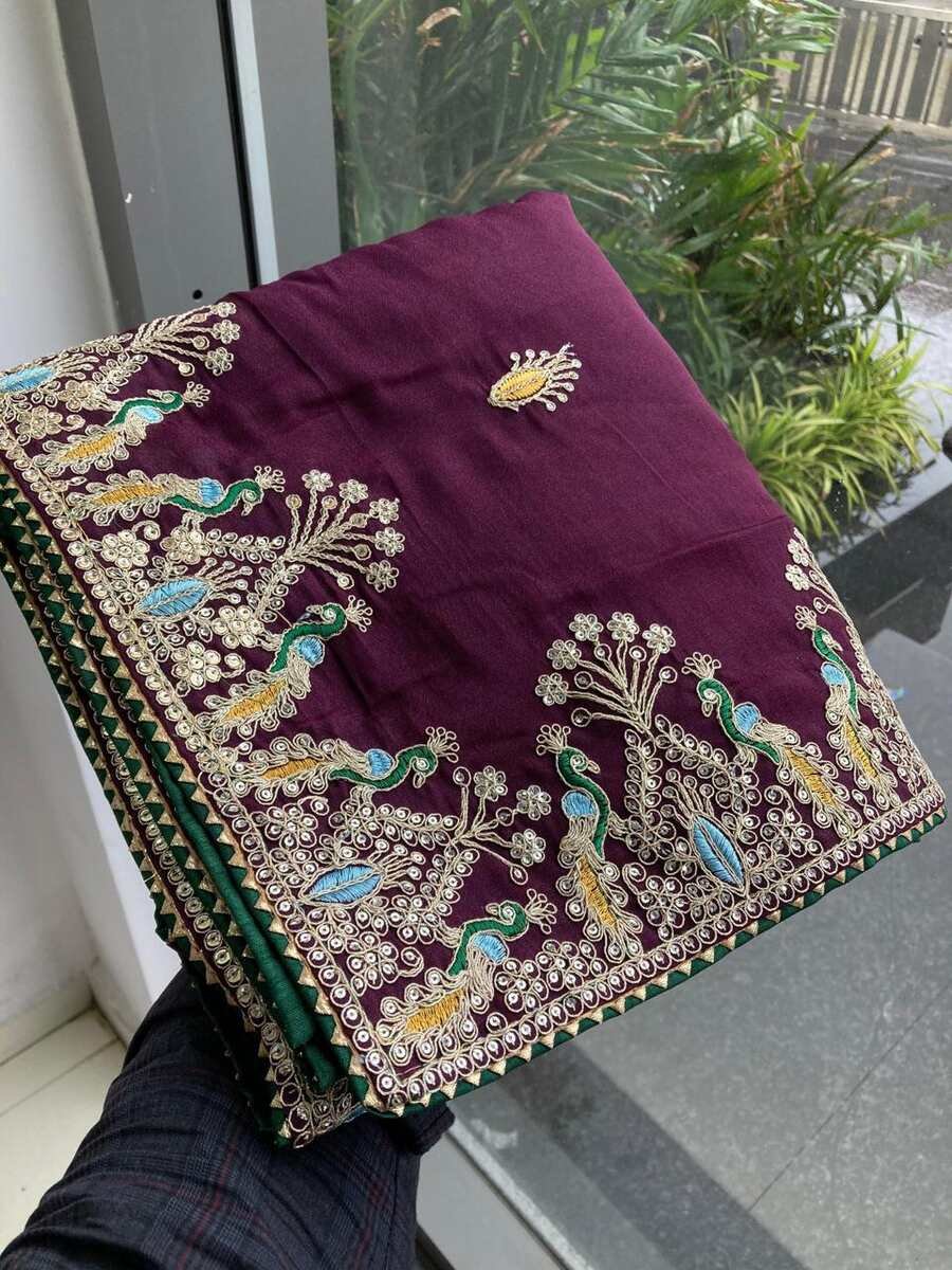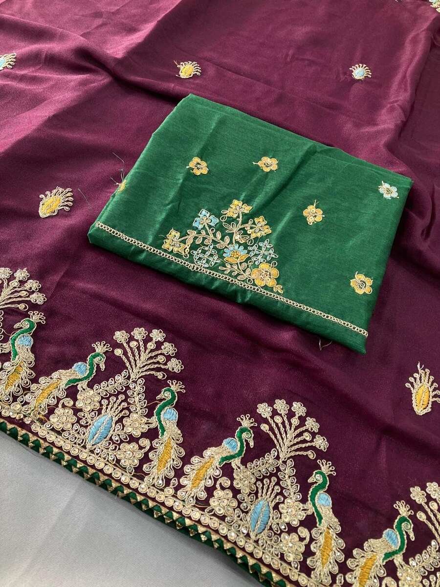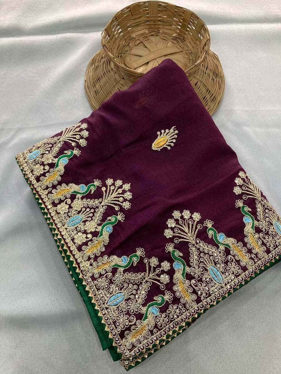 FABULOUS GEORGETTE THREAD SEQUENCE EMBROIDERY WORK SAREE WITH UNSTITCHED BLOUSE PURPLE