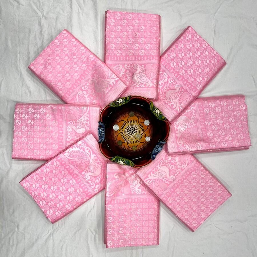 FABULOUS LICHI SILK JACQUARD WORK SAREE WITH UNSTITCHED BLOUSE BABY PINK