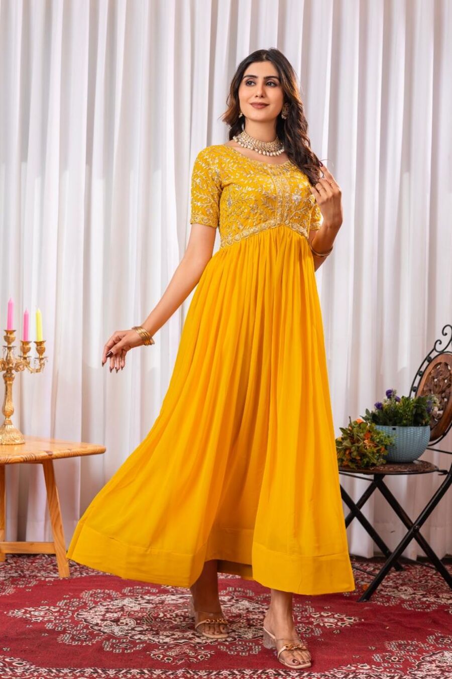 FABRIC & WORK :- FAUX BLOOMING WITH EMBROIDERY ZARI SEQUENCE WORK