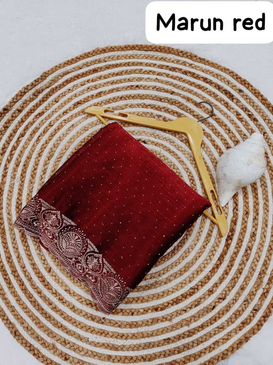 FANCY BURBERRY JIMMY CHOO EMBROIDERY DIAMOND WORK SAREE WITH UNSTITCHED BLOUSE MAROON