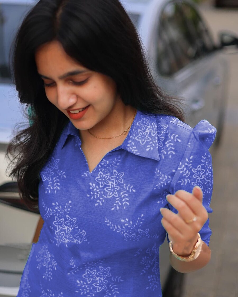 FANCY CHANDERI COTTON DIGITAL PRINTED KURTI SEA BLUE