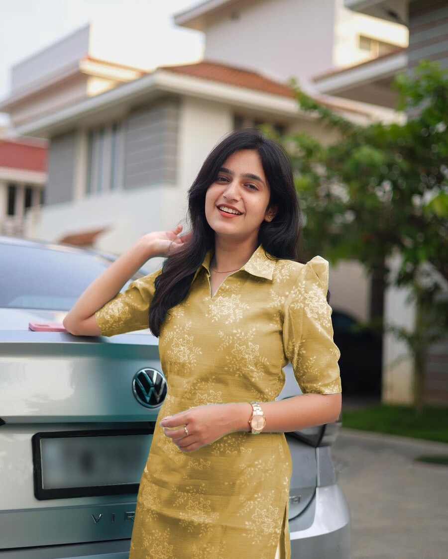 FANCY CHANDERI COTTON DIGITAL PRINTED KURTI YELLOW
