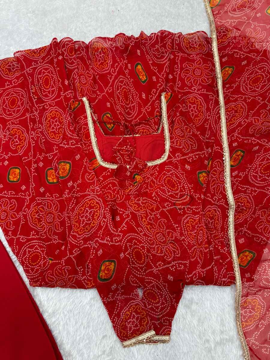 FANCY CHIFFON BANDHEJ PRINTED LACE WORK GOWN BOTTOM WITH DUPATTA RED