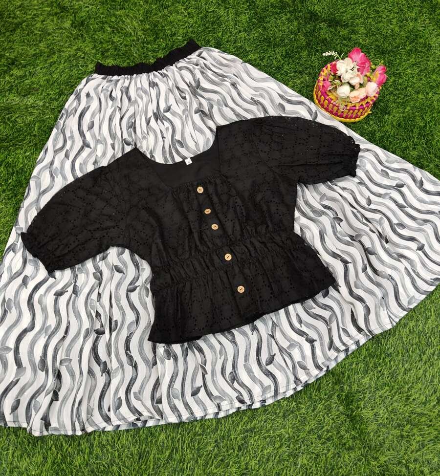 FANCY CHIFFON DIGITAL PRINT WORK SKIRT WITH TOP WHITE