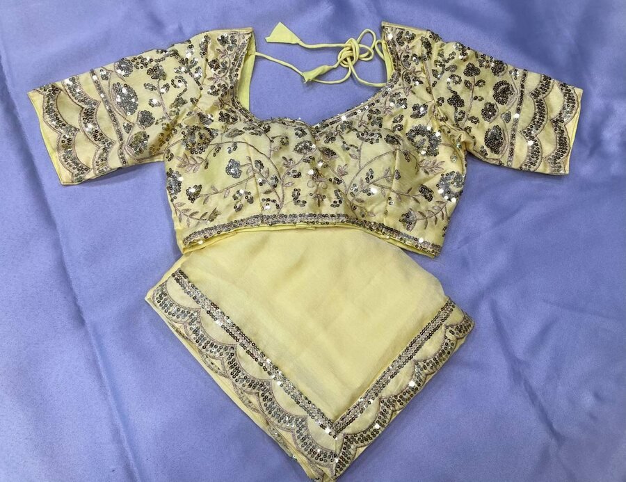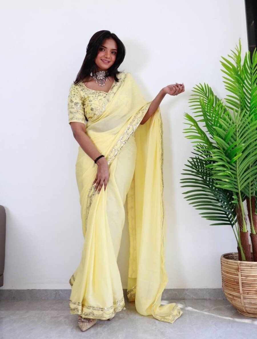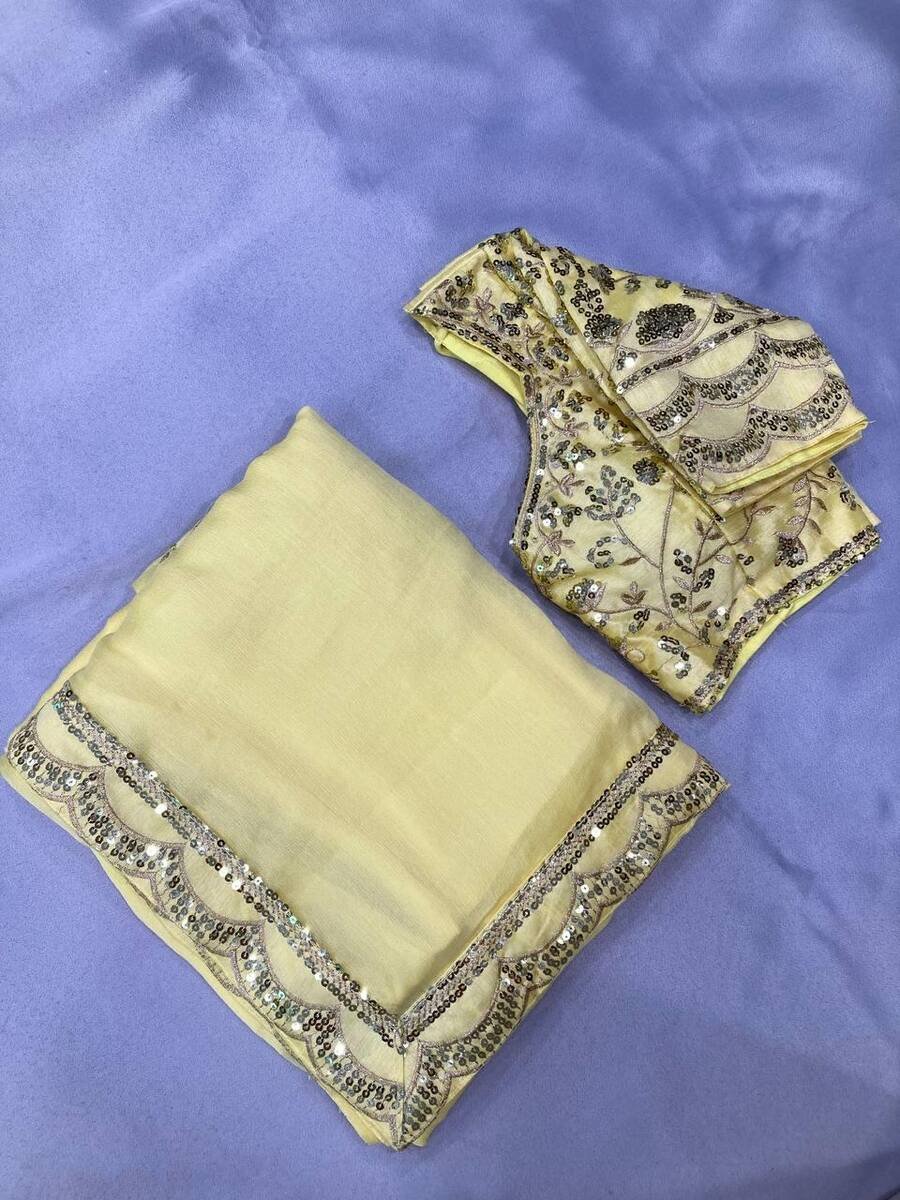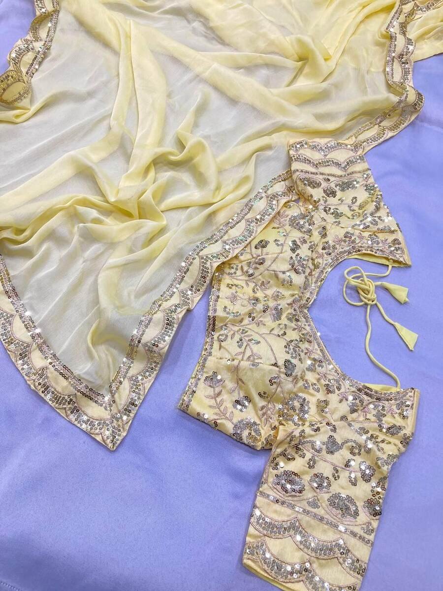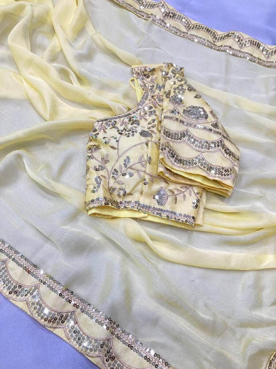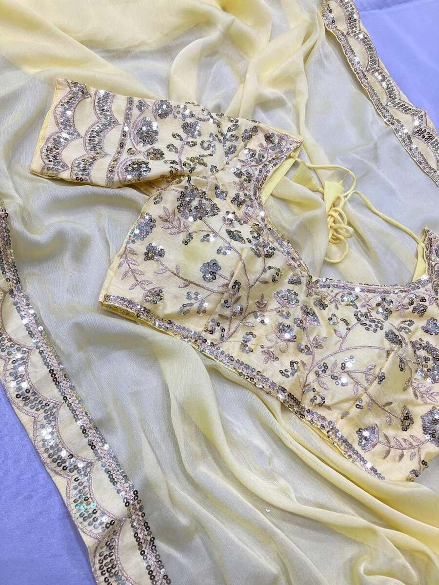 FANCY CHIFFON EMBROIDERY WITH SEQUENCE WORK SAREE WITH UNSTITCHED BLOUSE YELLOW