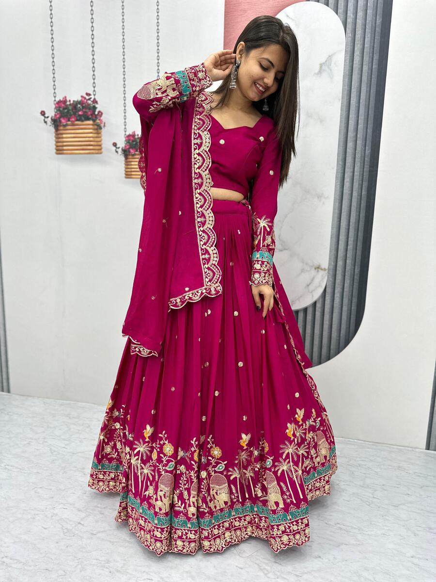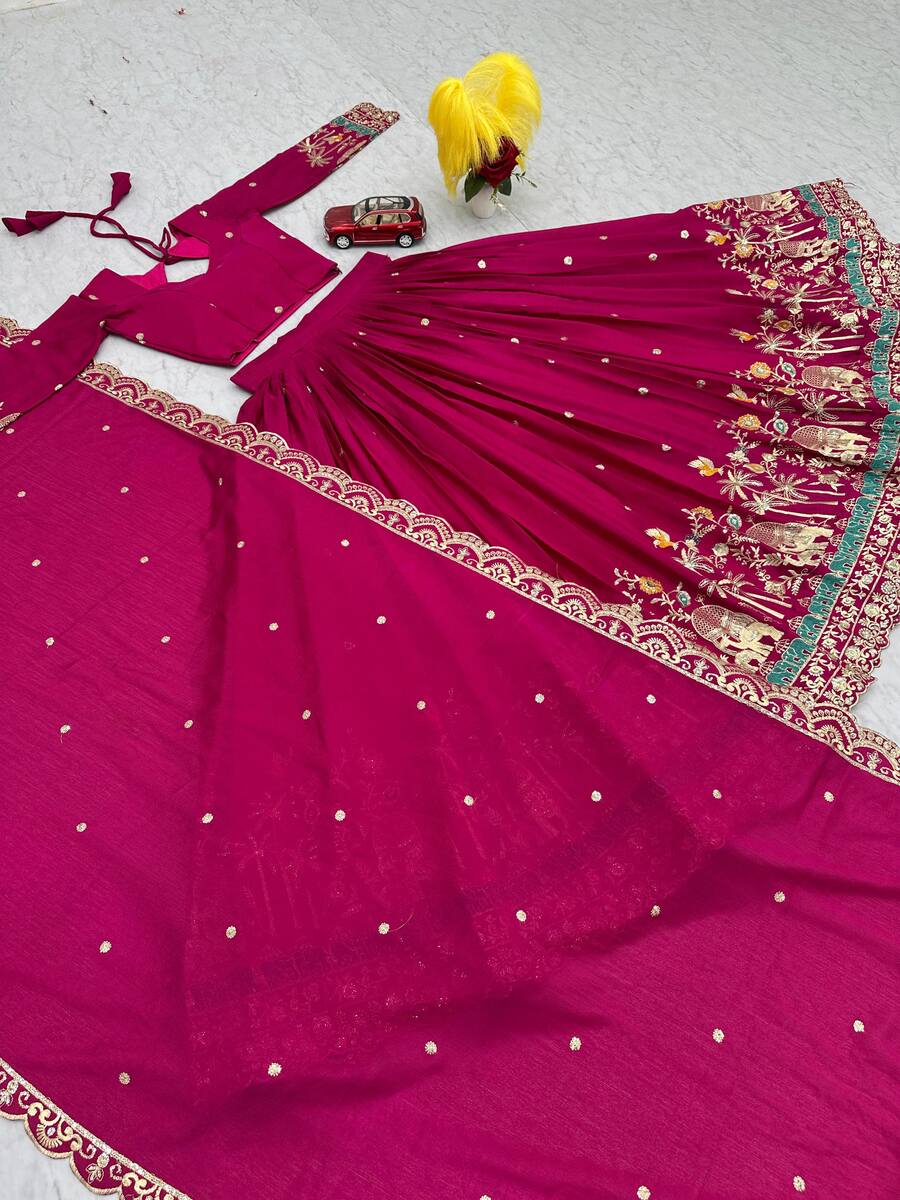 FANCY CHINON EMBROIDERY SEQUENCE WORK LEHENGA CHOLI WITH DUPATTA RANI