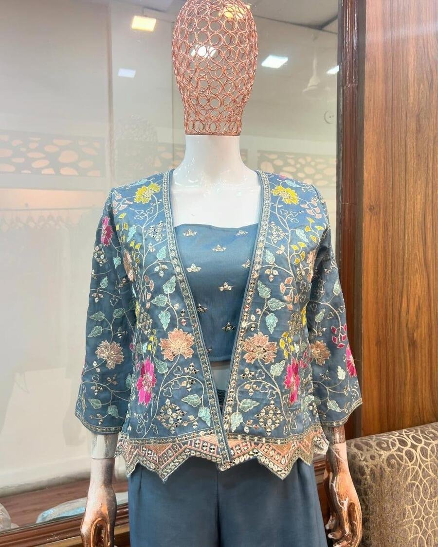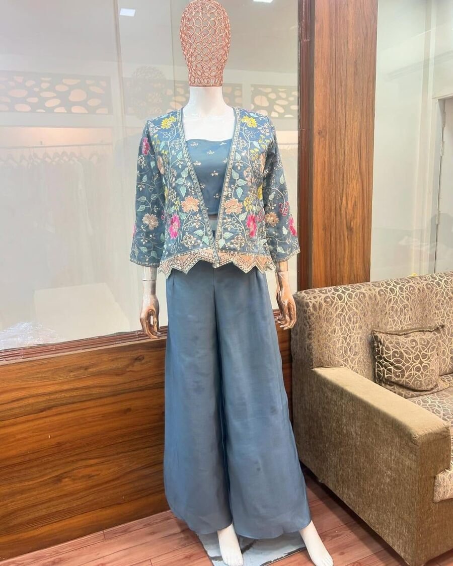 WORK : BEAUTIFUL DESIGNER FLORAL EMBROIDERY WORK OF MULTI COLOR THREADS & 5MM SEQUENCE