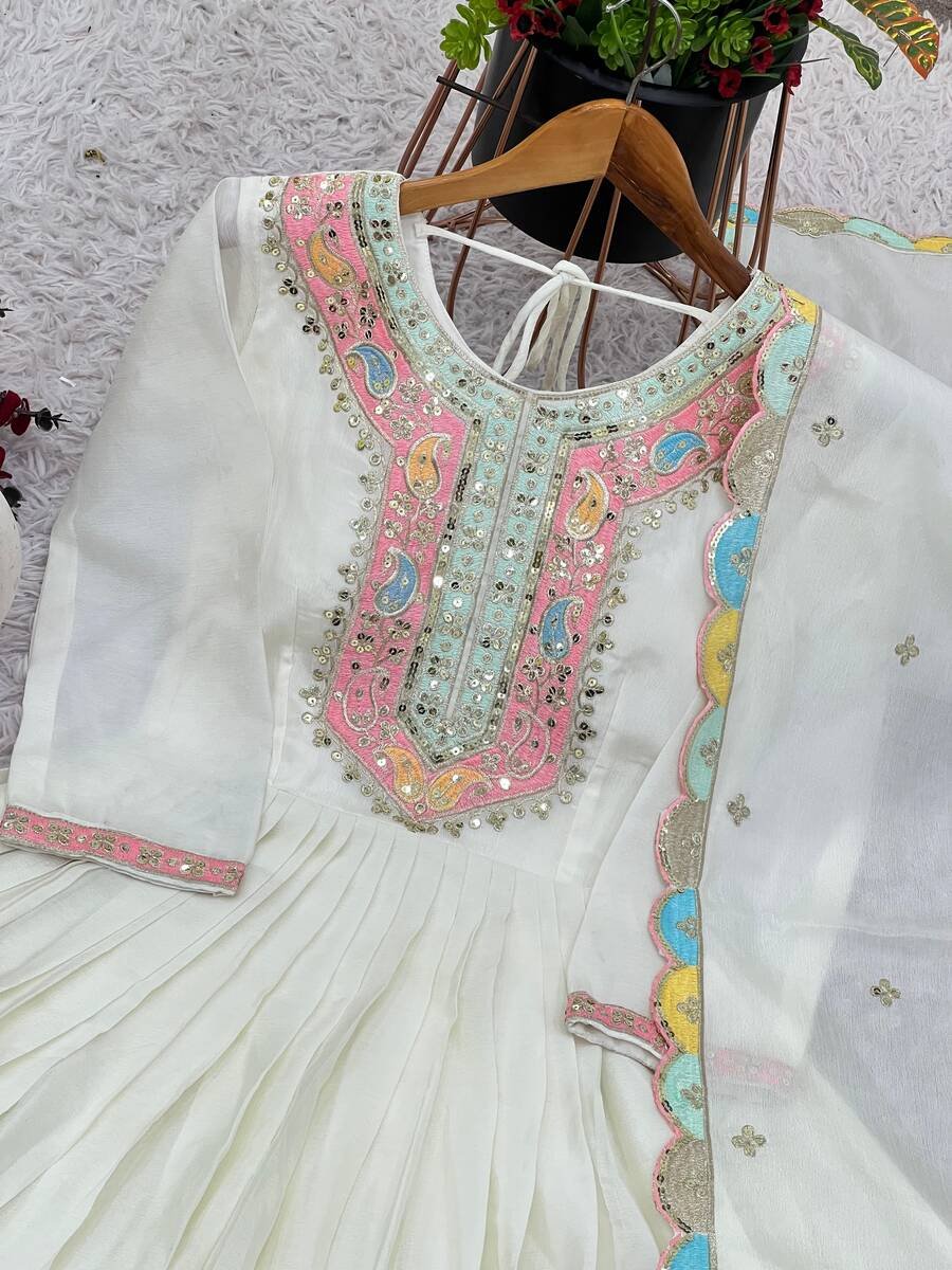 DUPATTA FABRIC : HEAVY CHINON SILK WITH HEAVY MULTI THREAD EMBROIDERY SEQUENCE WORK