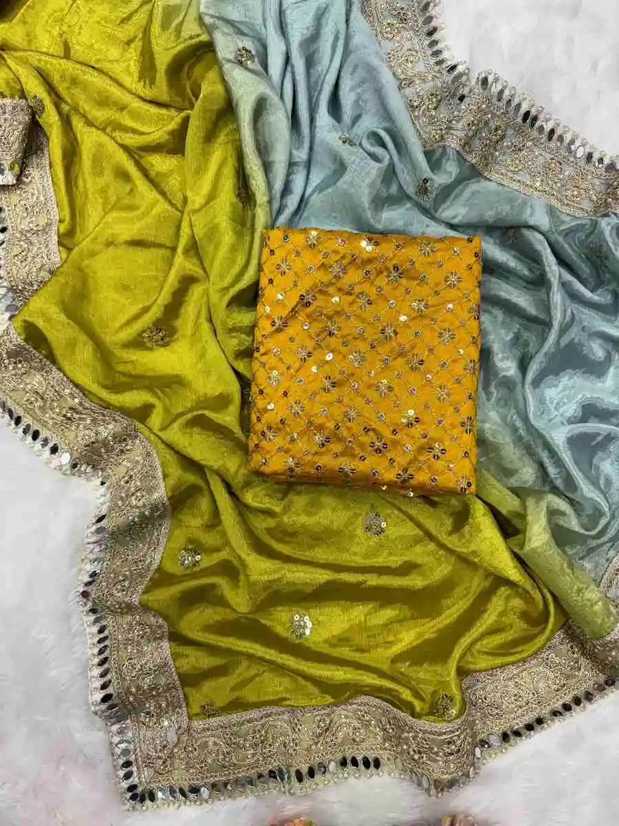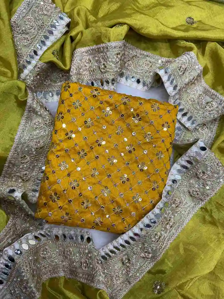 WORK : SEQUENCE AND DORI EMBROIDERY WITH MOTI AND REAL MIRRRO WORK