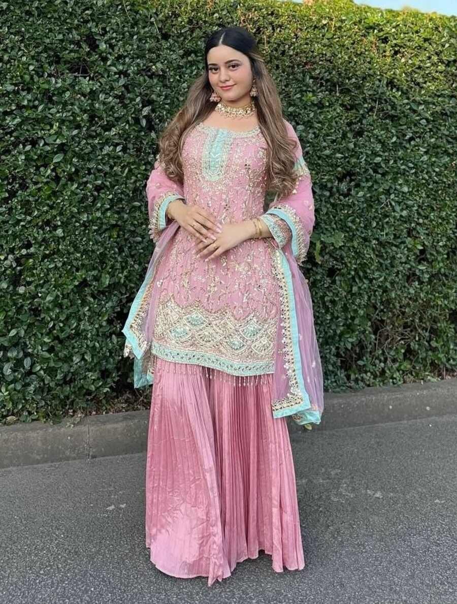 WORK :- ATTRACTIVE EMBROIDERY SEQUENCE AND THREAD WORK(READY MADE LACE AT BOTTOM)