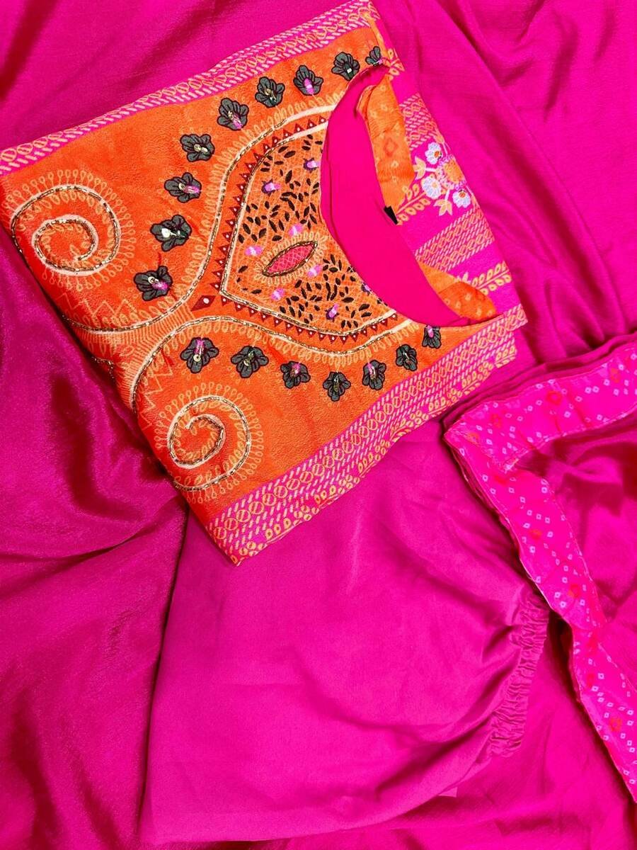 FANCY CHINON SILK HAND WORK WITH LINING WORK TOP BOTTOM WITH DUPATTA RANI