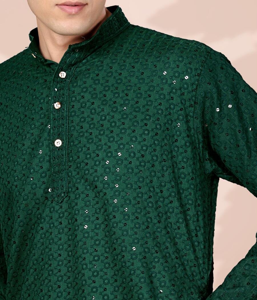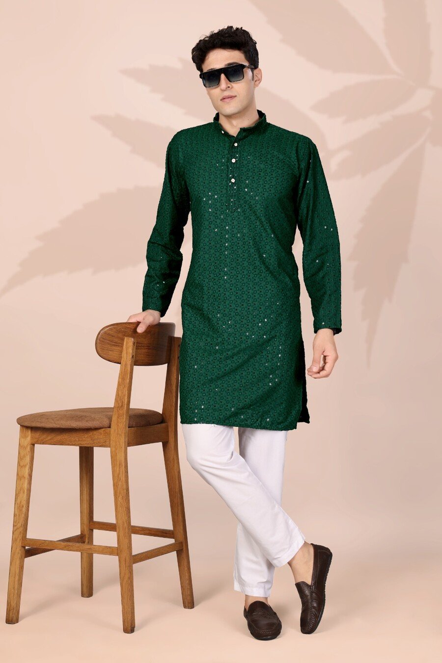 FANCY COTTON EMBROIDERY WORK MEN’S ONLY KURTA GREEN