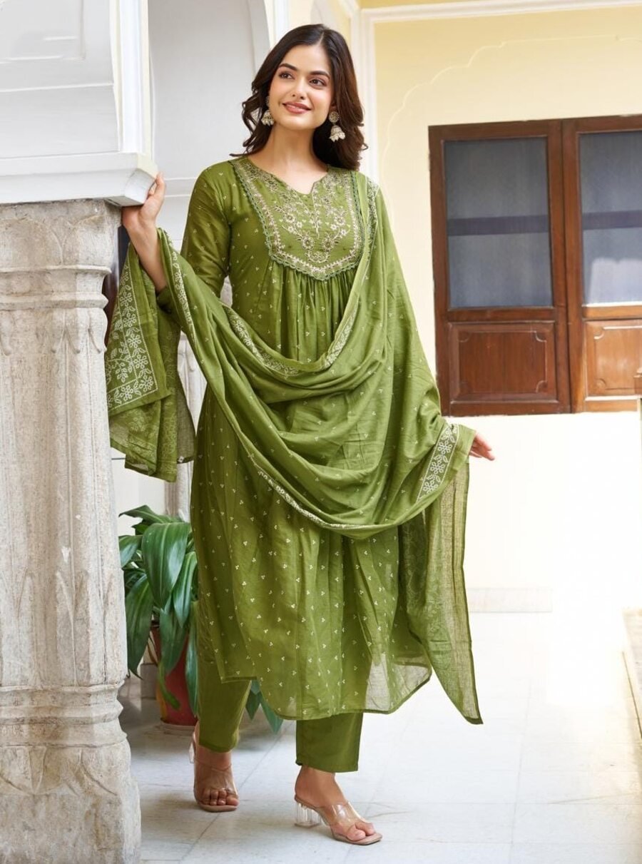 FANCY COTTON EMBROIDERY WORK TOP BOTTOM WITH DUPATTA GREEN