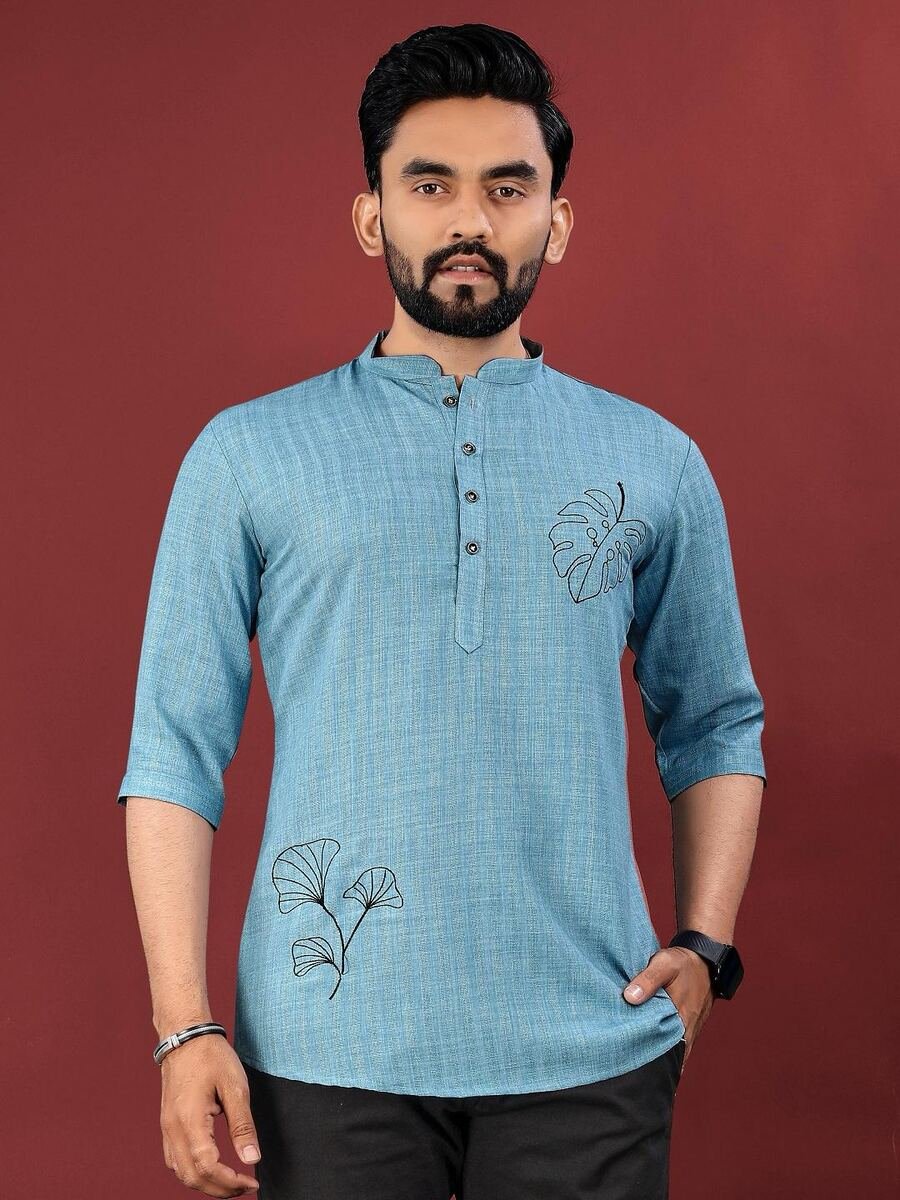FANCY COTTON HAND WOVEN MEN’S SHORT KURTA SKY