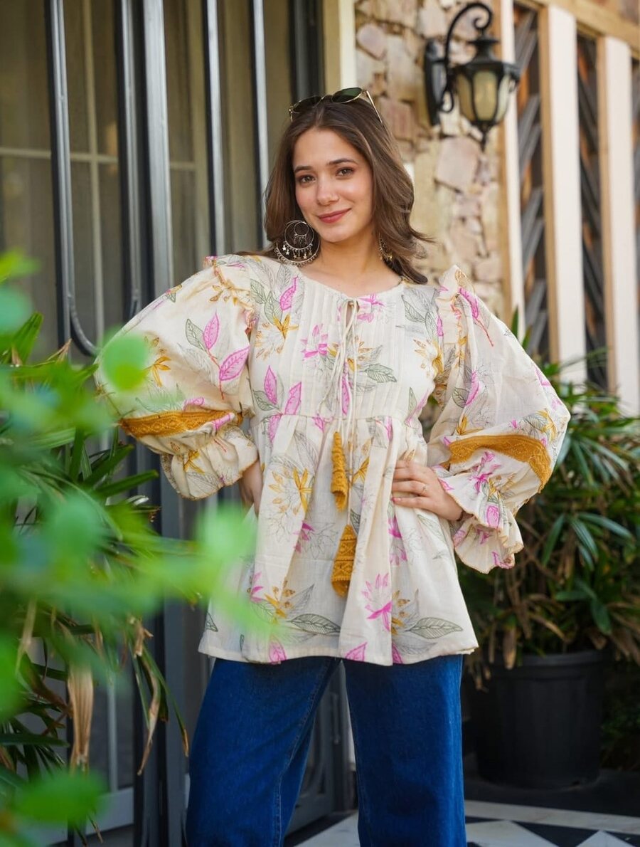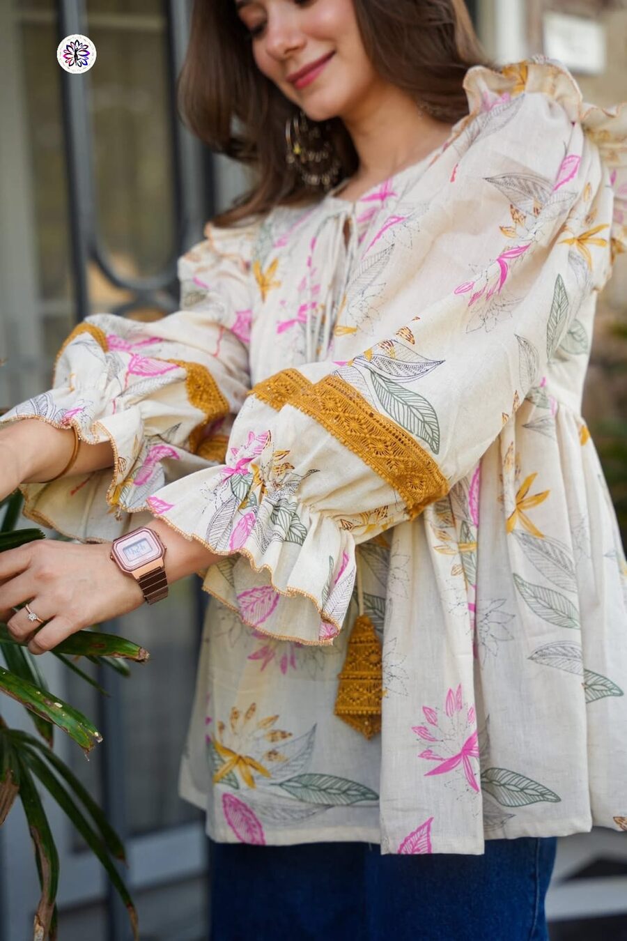 FANCY COTTON PRINTED AND STITCHING PATTERN TOP OFF WHITE