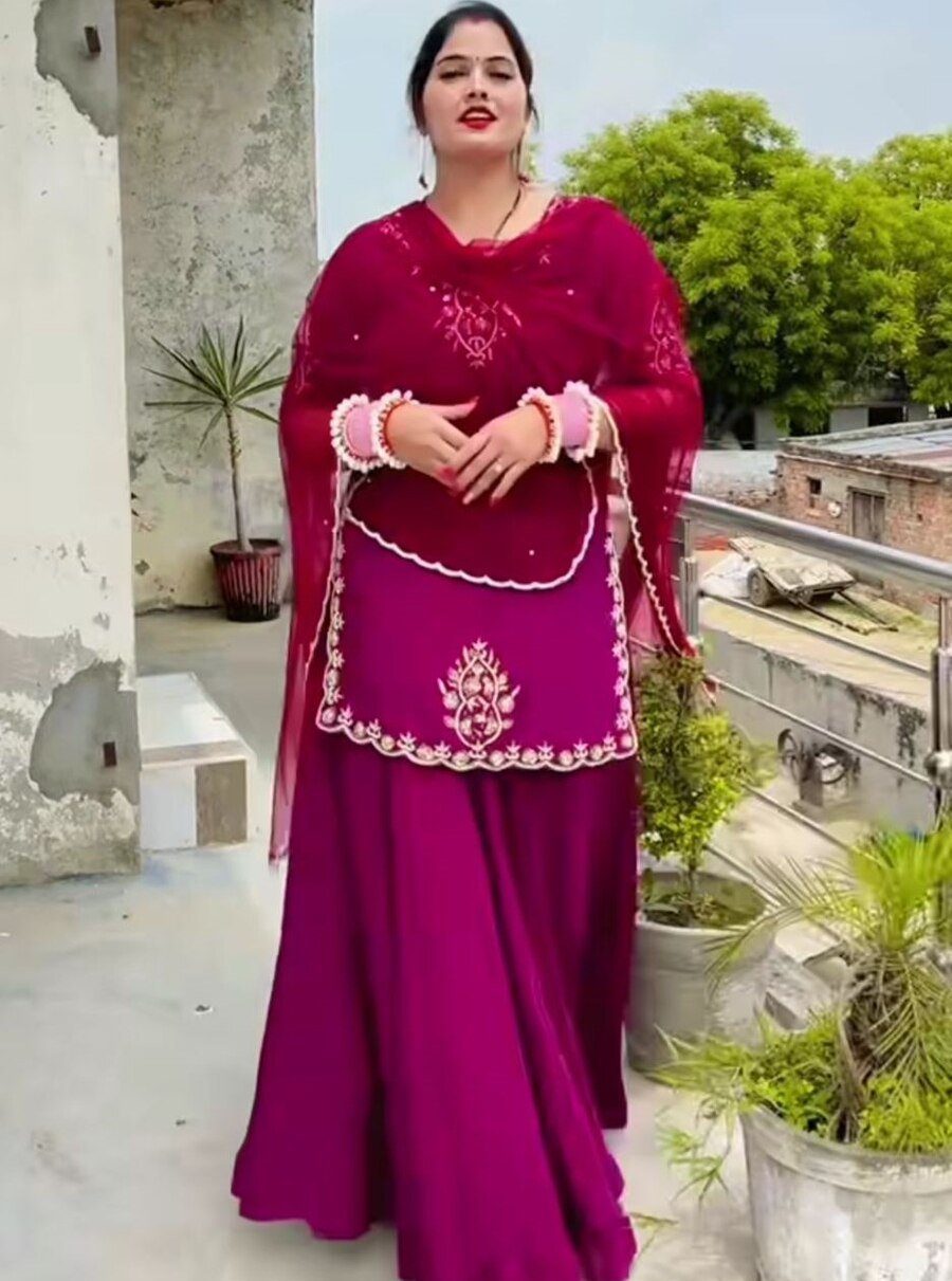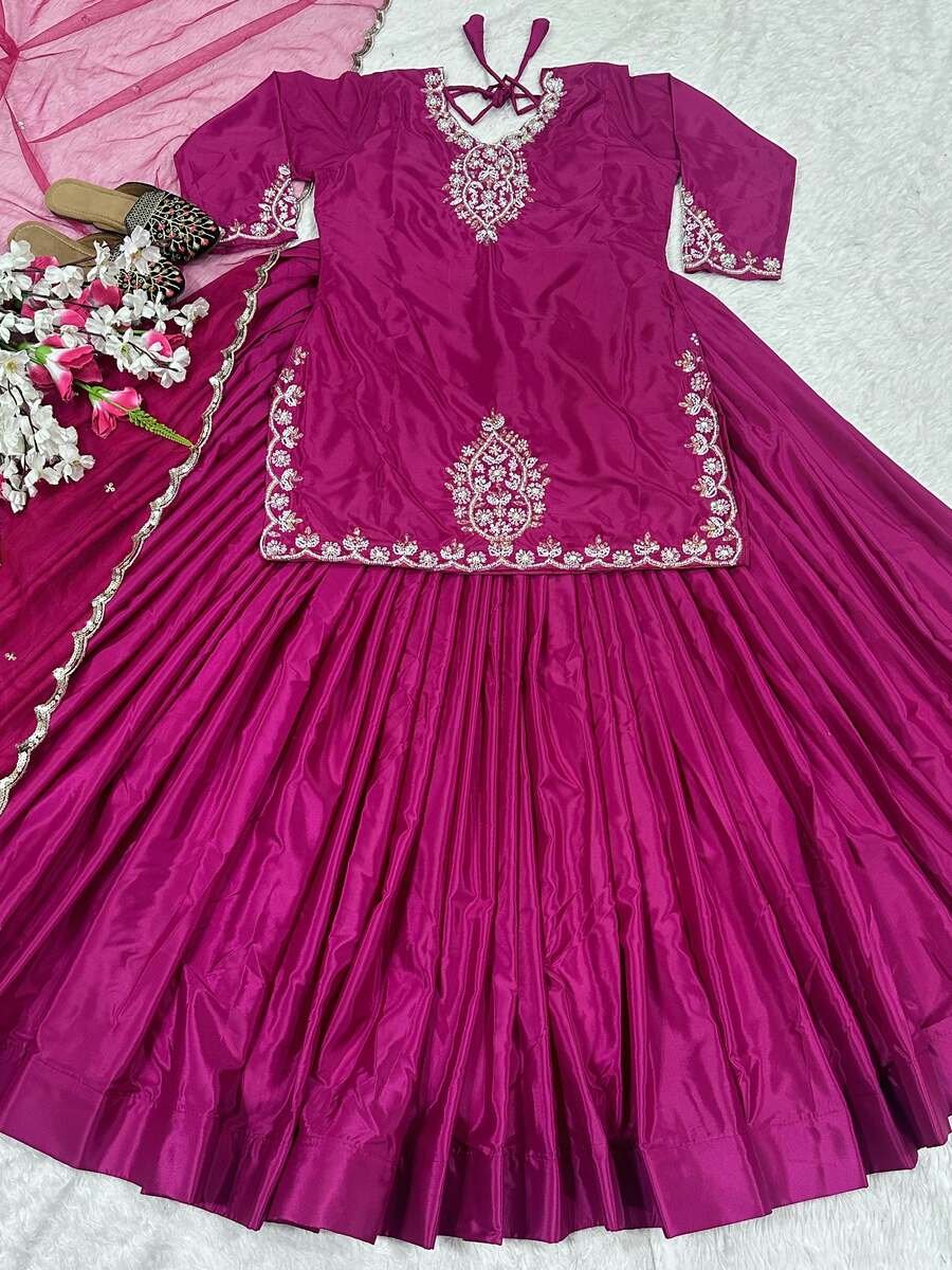 FANCY CREEP SILK HANDWORK WITH SEQUENCE MULTI NEEDLE EMBROIDERY AND ZARI WORK TOP LEHENGA WITH DUPATTA RANI