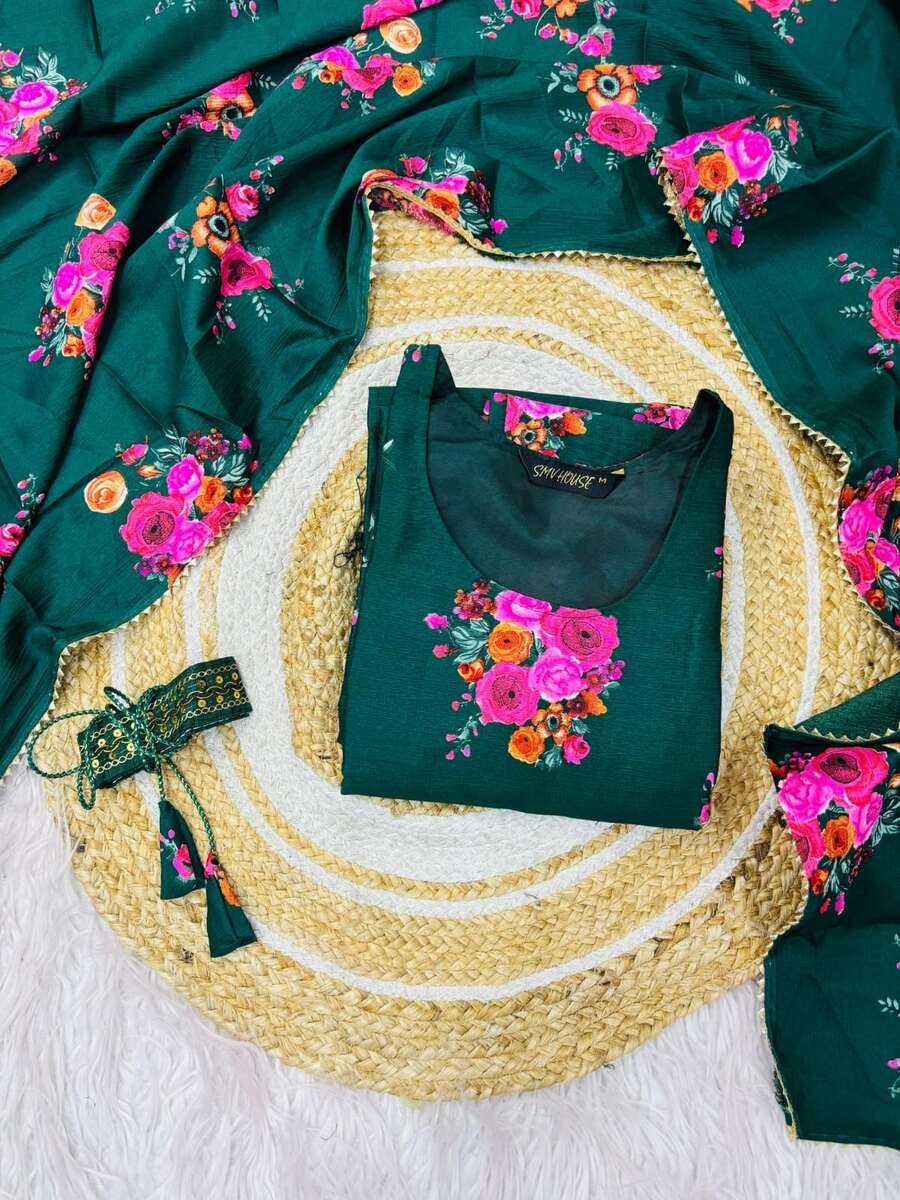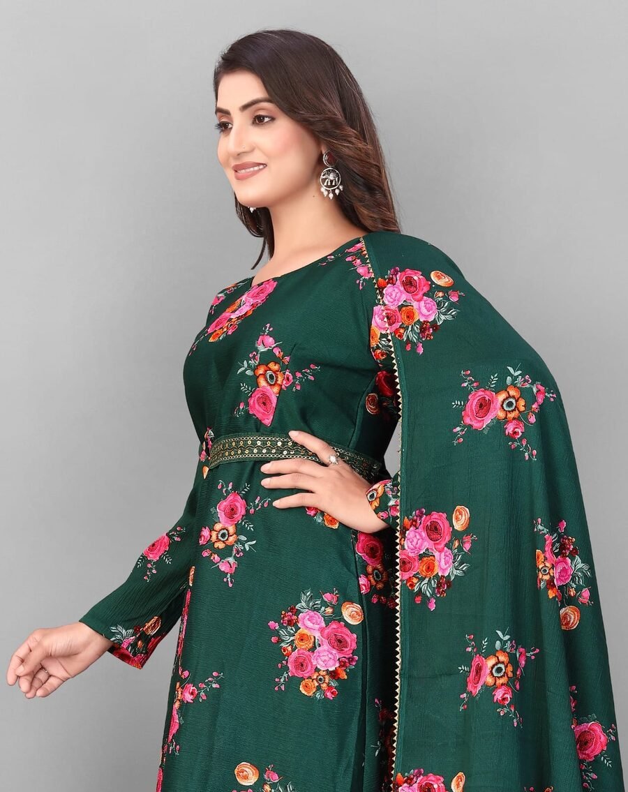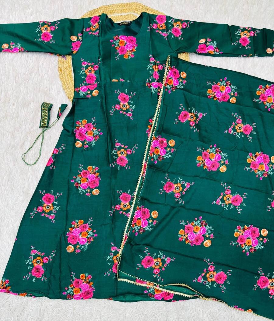 FANCY DELTA COTTON FLORAL PRINT WORK ANARKALI GOWN WITH DUPATTA SET GREEN