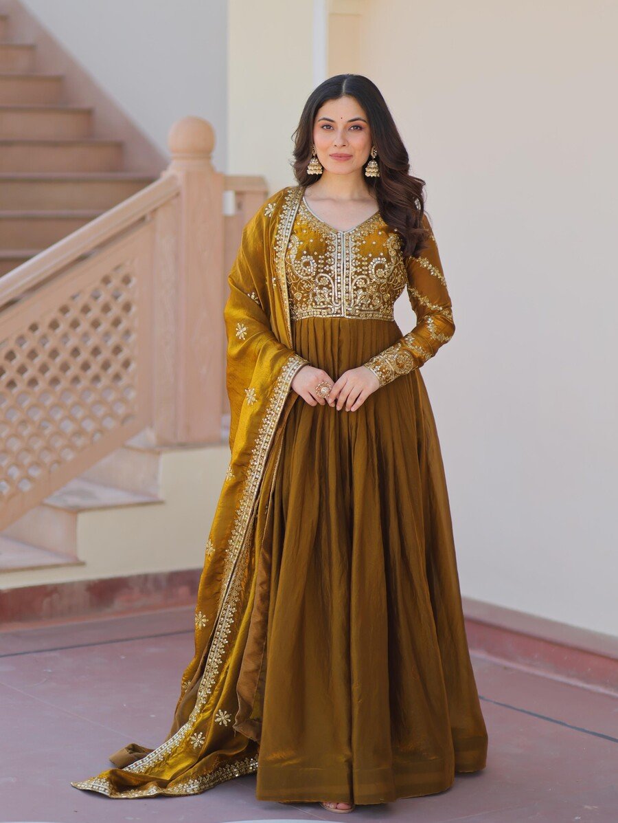 FABRIC & WORK :- FENDY WITH RICH SEQUENCE & ZARI EMBROIDERED CUT-WORK