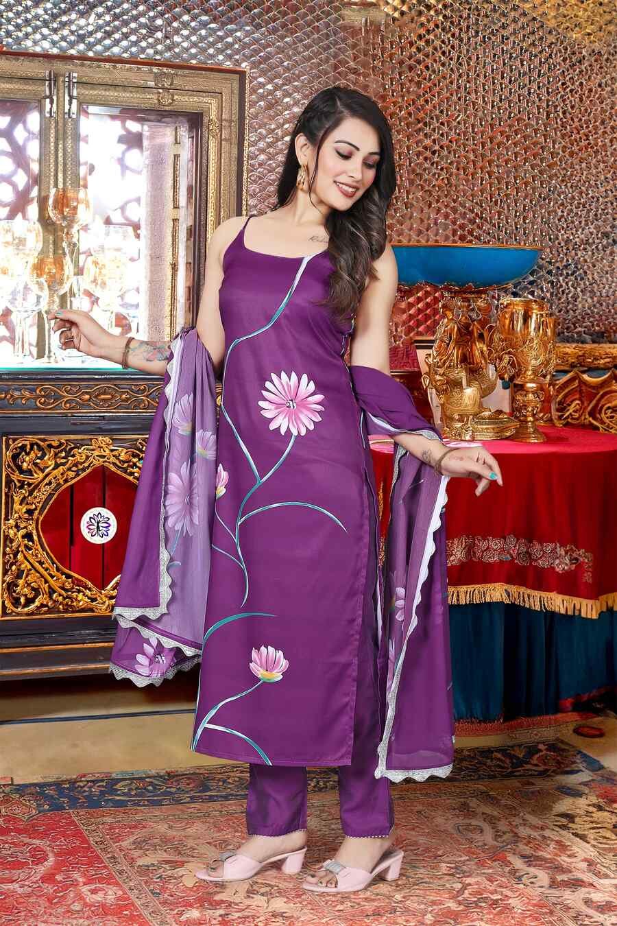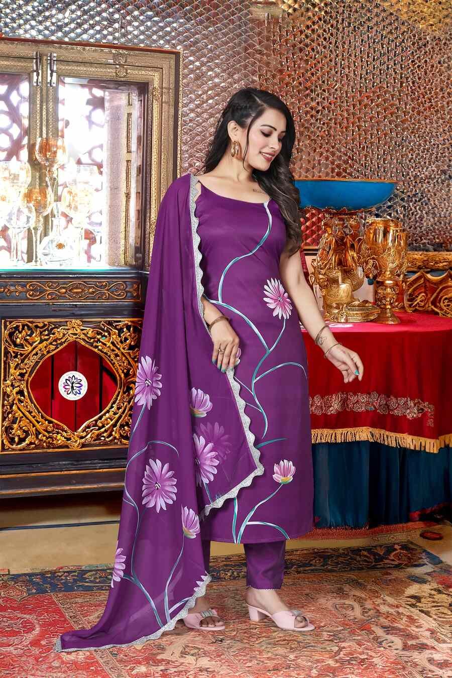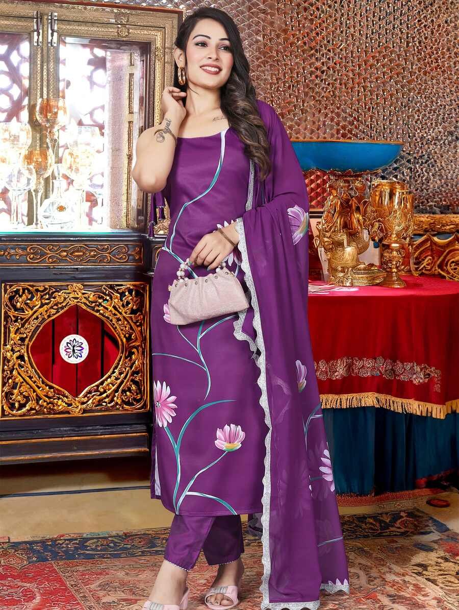 FANCY FRENCH CREPE PRINTED TOP BOTTOM WITH DUPATTA PURPLE