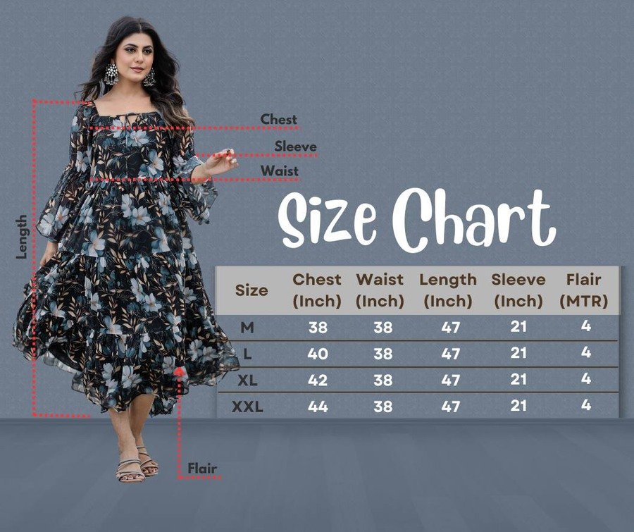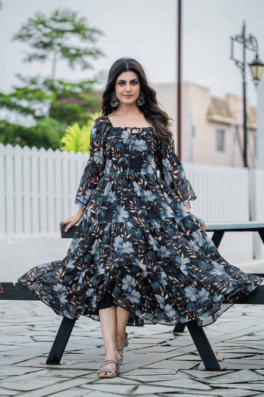FANCY GEORGETTE DIGITAL FLORAL PRINTED ONLY ONE PIECE BLACK