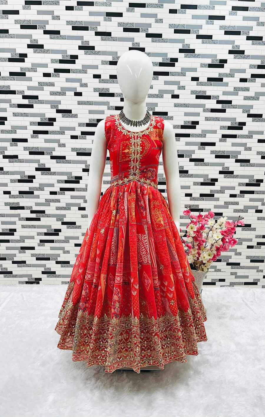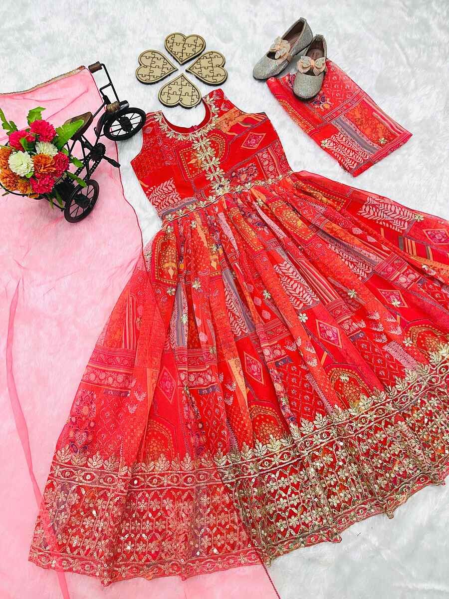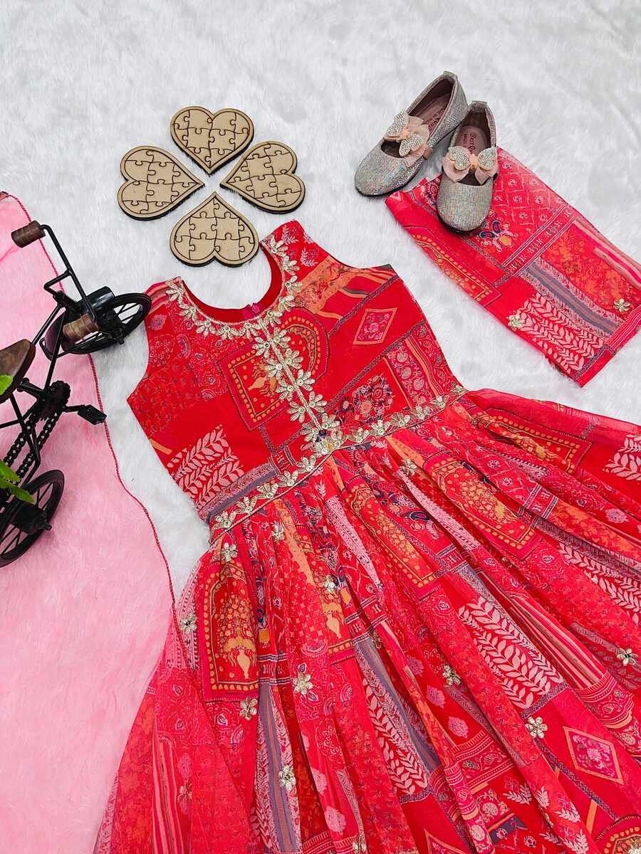 FANCY GEORGETTE DIGITAL PRINTED EMBROIDERY LACE WORK KID’S WEAR GOWN WITH DUPATTA GAJRI