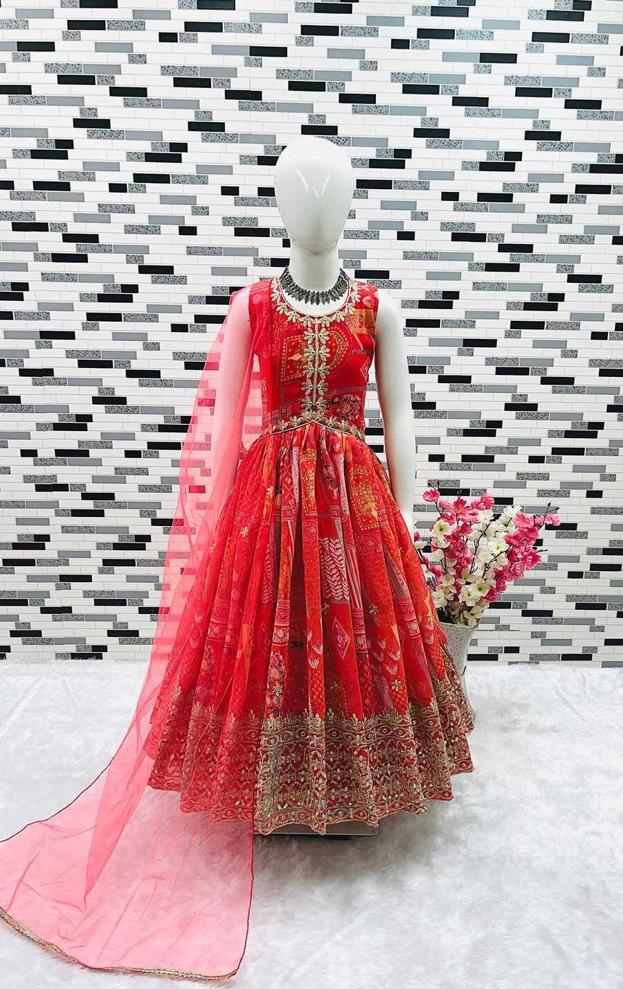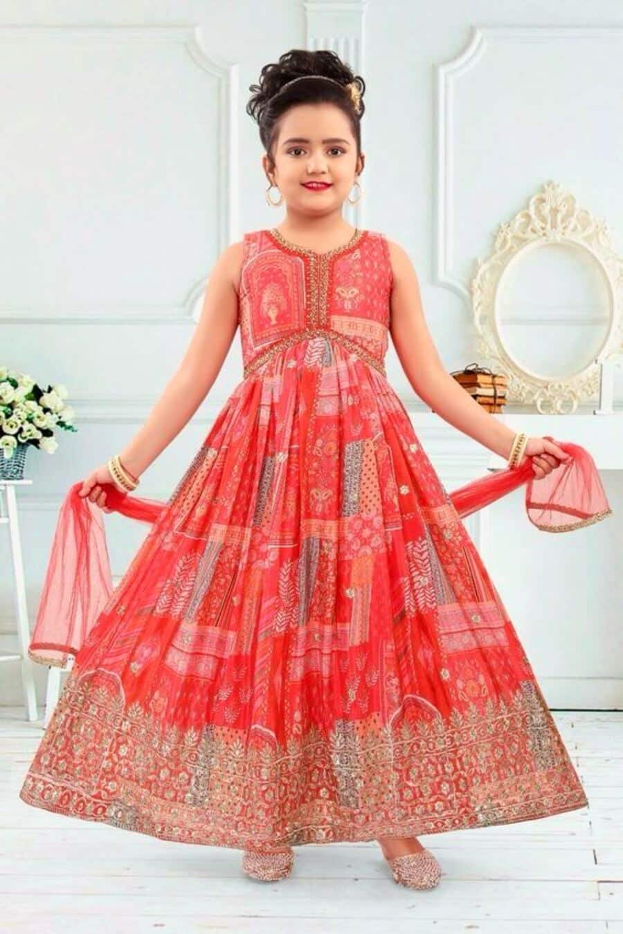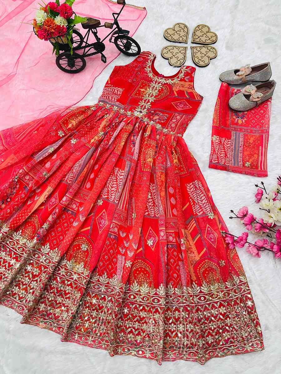 FANCY GEORGETTE DIGITAL PRINTED EMBROIDERY LACE WORK KID’S WEAR GOWN WITH DUPATTA GAJRI