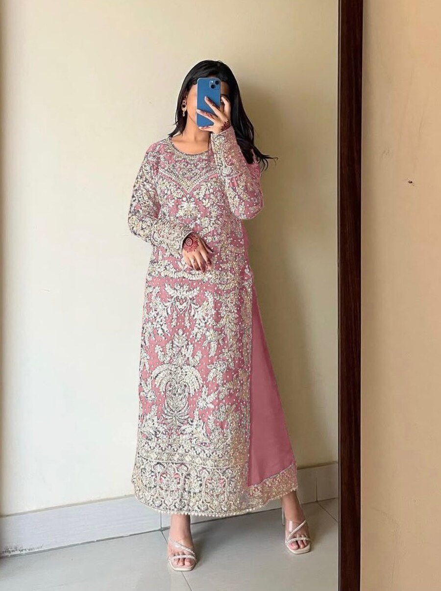TOP FABRIC : HEAVY FAUX GEORGETTE WITH HEAVY EMBROIDERY WORK WITH DIAMOND HANDWORK WITH FULL SLEEVE