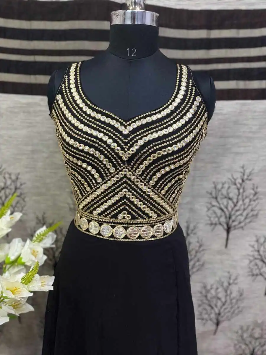 FANCY GEORGETTE EMBROIDERY FOIL WORK LEHENGA CHOLI WITH DUPATTA BLACK