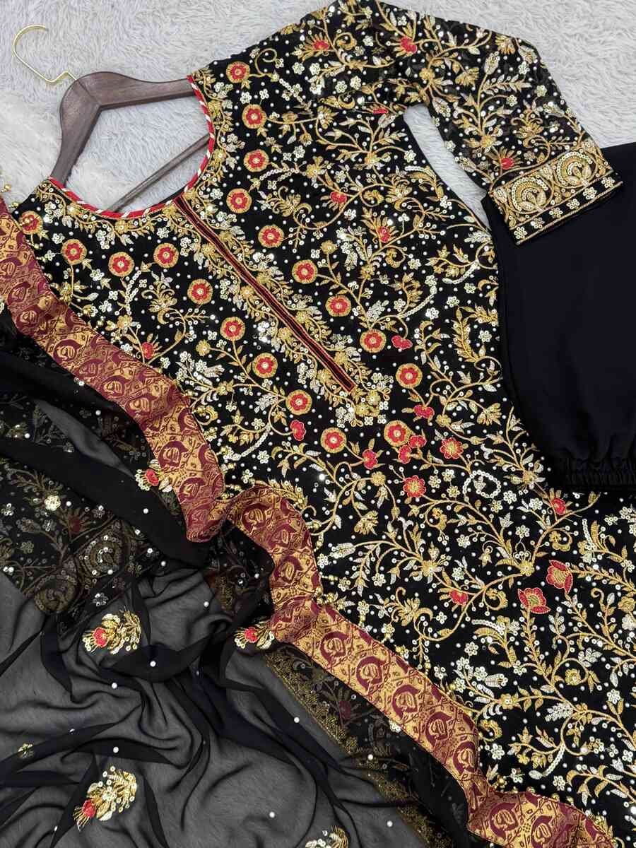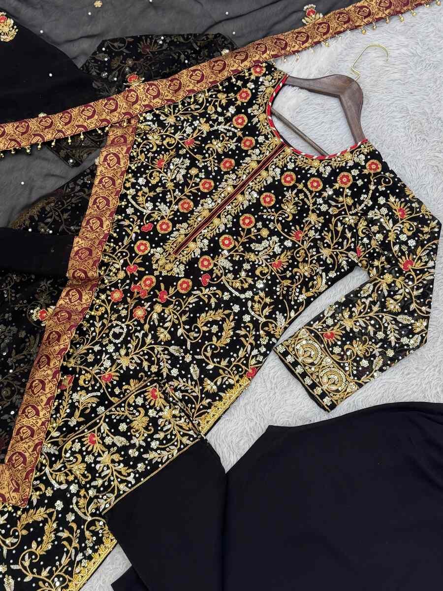 WORK : HEAVY EMBROIDERY AND SEQUENCE WORK WITH RIVETED MOTI (WORK IN ONLY FRONT)