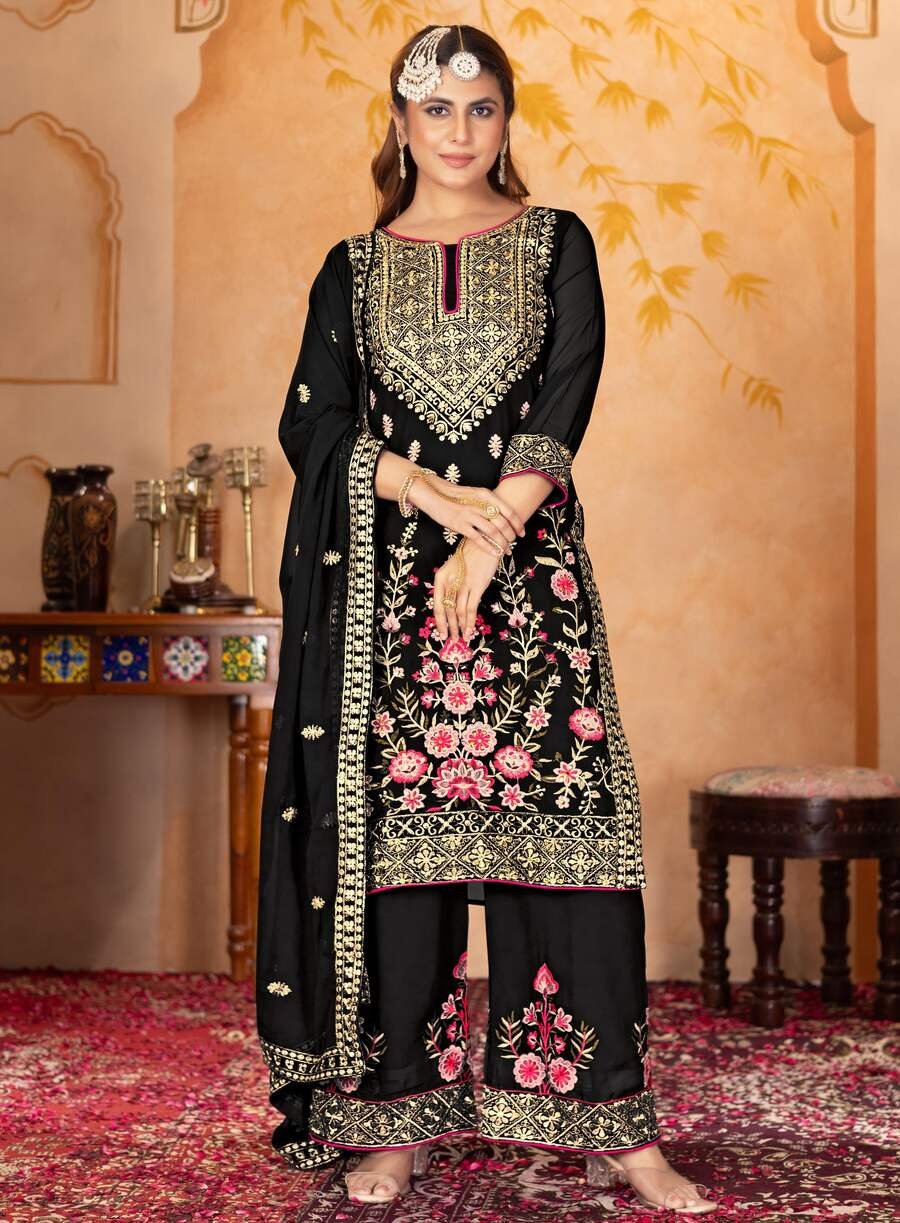 FANCY GEORGETTE EMBROIDERY SEQUENCE REAL MIRROR HAND WORK TOP PALAZZO WITH DUPATTA BLACK